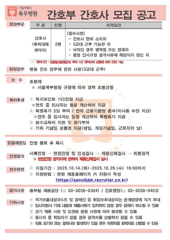 2025³â Á¦27ȸ Á÷¿ø¸ðÁý(º´µ¿°£È£»ç_ÈÞÁ÷´ëü°è¾àÁ÷) °ø°í