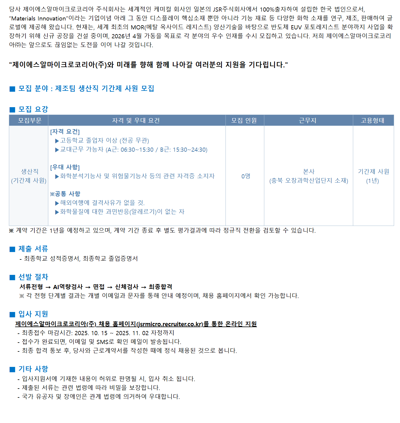 Á¦ÀÌ¿¡½º¾Ë¸¶ÀÌÅ©·ÎÄÚ¸®¾Æ(ÁÖ) ä¿ë ȨÆäÀÌÁö(jsrmicro.recruiter.co.kr)¸¦ ÅëÇÑ ¿Â¶óÀÎ Áö¿ø