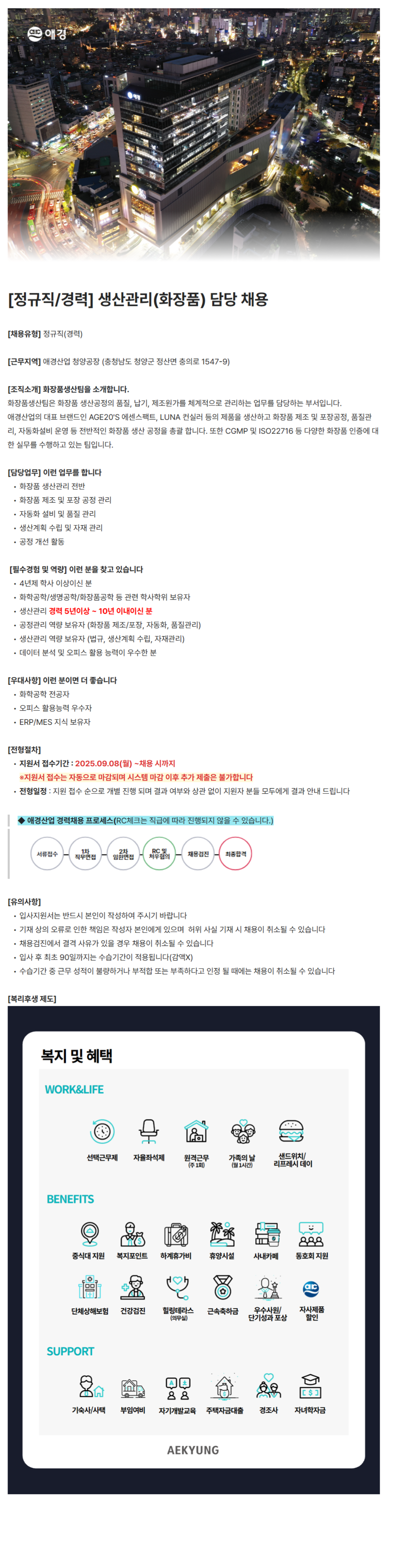 ¾Ö°æ»ê¾÷ÀÇ ´ëÇ¥ ºê·£µåÀÎ AGE20'S ¿¡¼¾½ºÆÑÆ®, LUNA ÄÁ½Ç·¯ µîÀÇ Á¦Ç°À» »ý»êÇϰí ÈÀåǰ Á¦Á¶ ¹× Æ÷Àå°øÁ¤, ǰÁú°ü¸®, ÀÚµ¿È¼³ºñ ¿î¿µ µî Àü¹ÝÀûÀÎ ÈÀåǰ »ý»ê °øÁ¤À» ÃѰý ÇÕ´Ï´Ù. ¶ÇÇÑ CGMP ¹× ISO22716 µî ´Ù¾çÇÑ ÈÀåǰ ÀÎÁõ¿¡ ´ëÇÑ ½Ç¹«¸¦ ¼öÇàÇϰí ÀÖ´Â ÆÀÀÔ´Ï´Ù.