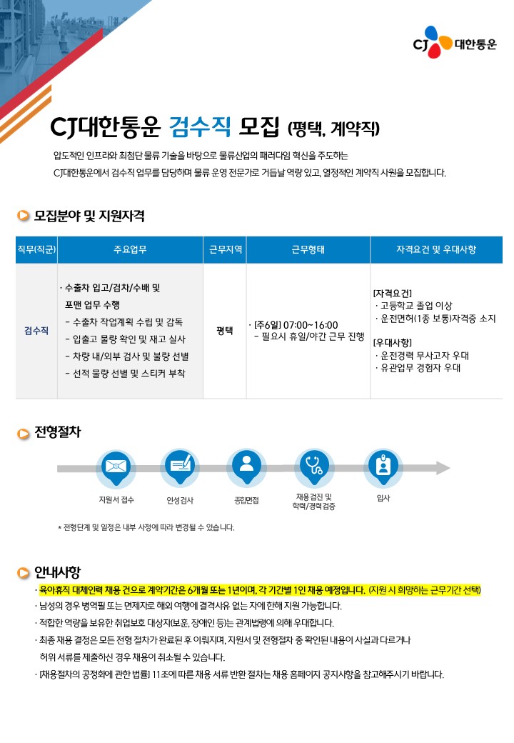 CJ´ëÇÑÅë¿î °Ë¼öÁ÷ ¸ðÁý (ÆòÅÃ, °è¾àÁ÷)