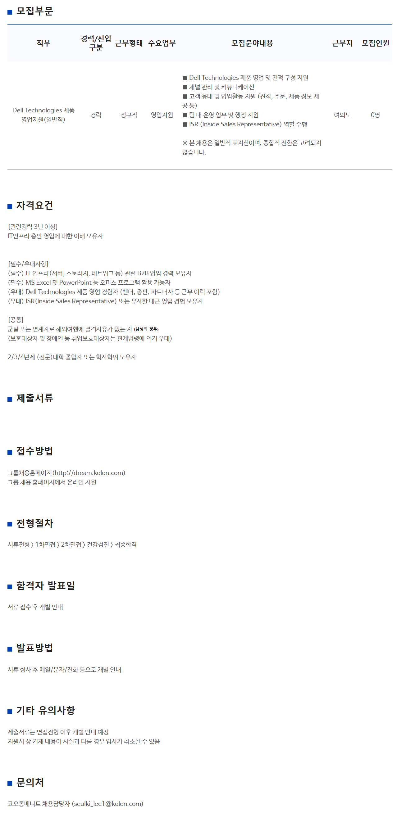 Dell Technologies Á¦Ç° ¿µ¾÷Áö¿ø(ÀϹÝÁ÷) °æ·Â Á¤±ÔÁ÷ ¿µ¾÷Áö¿ø ◼ Dell Technologies Á¦Ç° ¿µ¾÷ ¹× °ßÀû ±¸¼º Áö¿ø