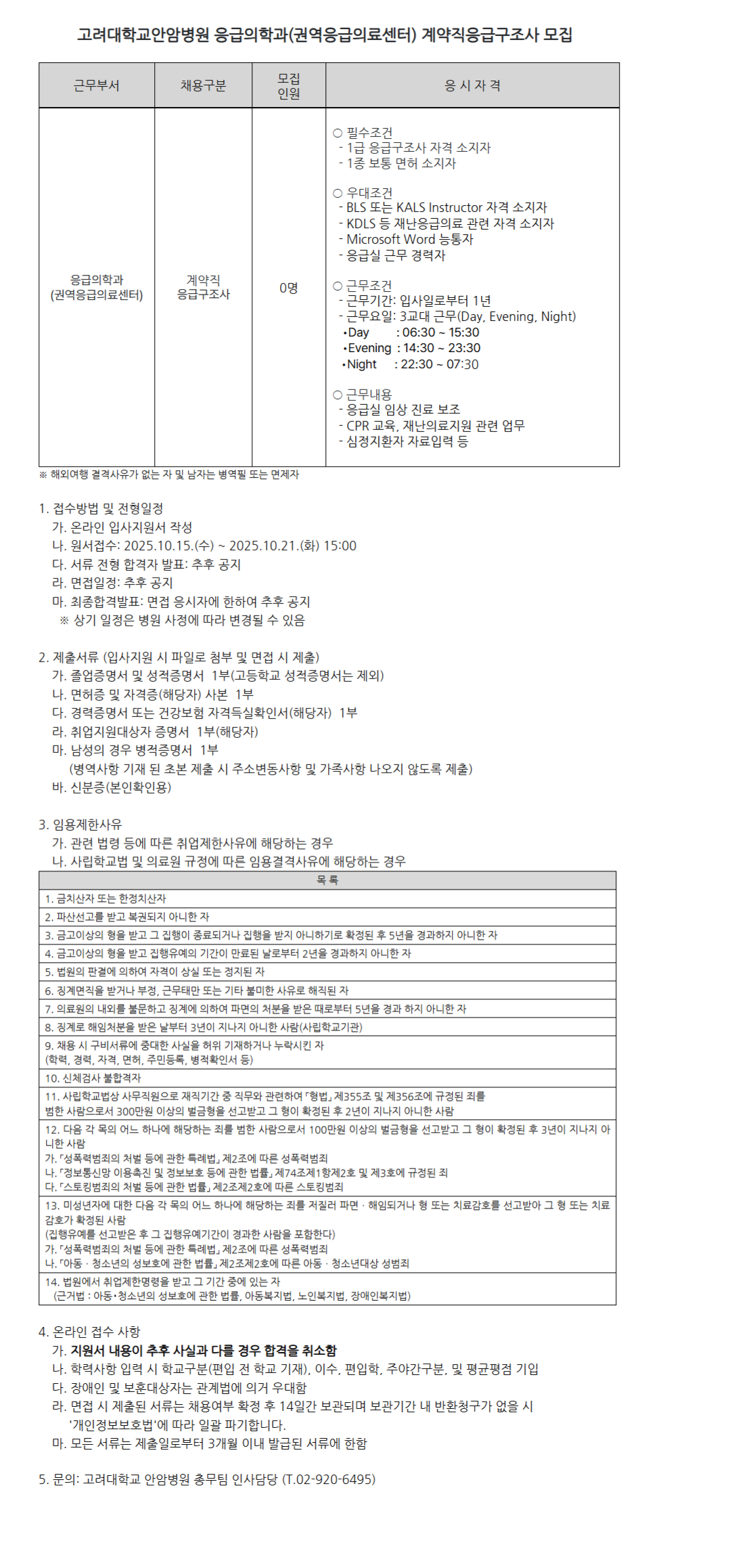 [¾È¾Ïº´¿ø 25-181]ÀÀ±ÞÀÇÇаú(±Ç¿ªÀÀ±ÞÀÇ·á¼¾ÅÍ) °è¾àÁ÷ ÀÀ±Þ±¸Á¶»ç ¸ðÁý