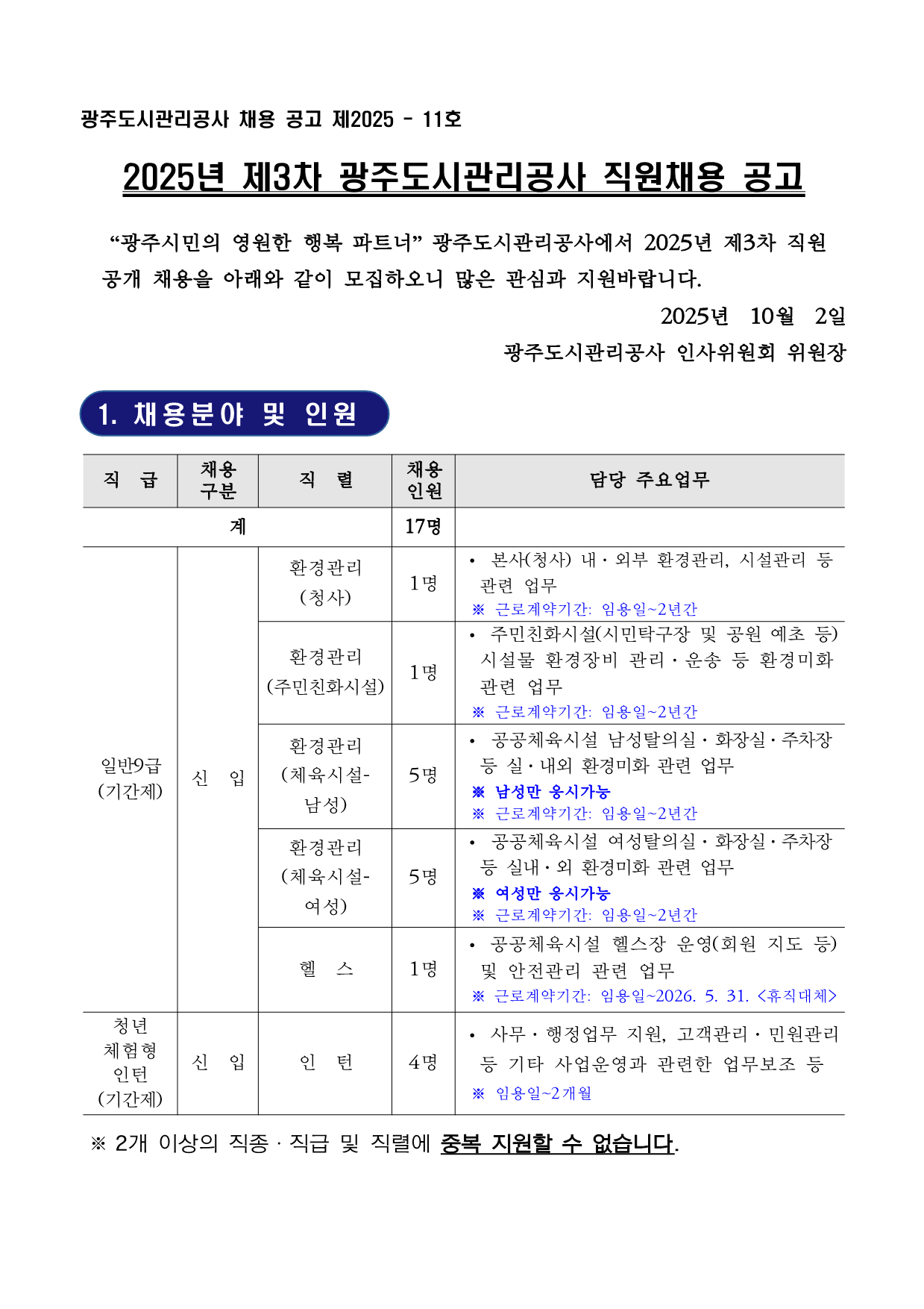 ±¤ÁÖµµ½Ã°ü¸®°ø»ç Á¦3Â÷ Á÷¿øÃ¤¿ë °ø°í