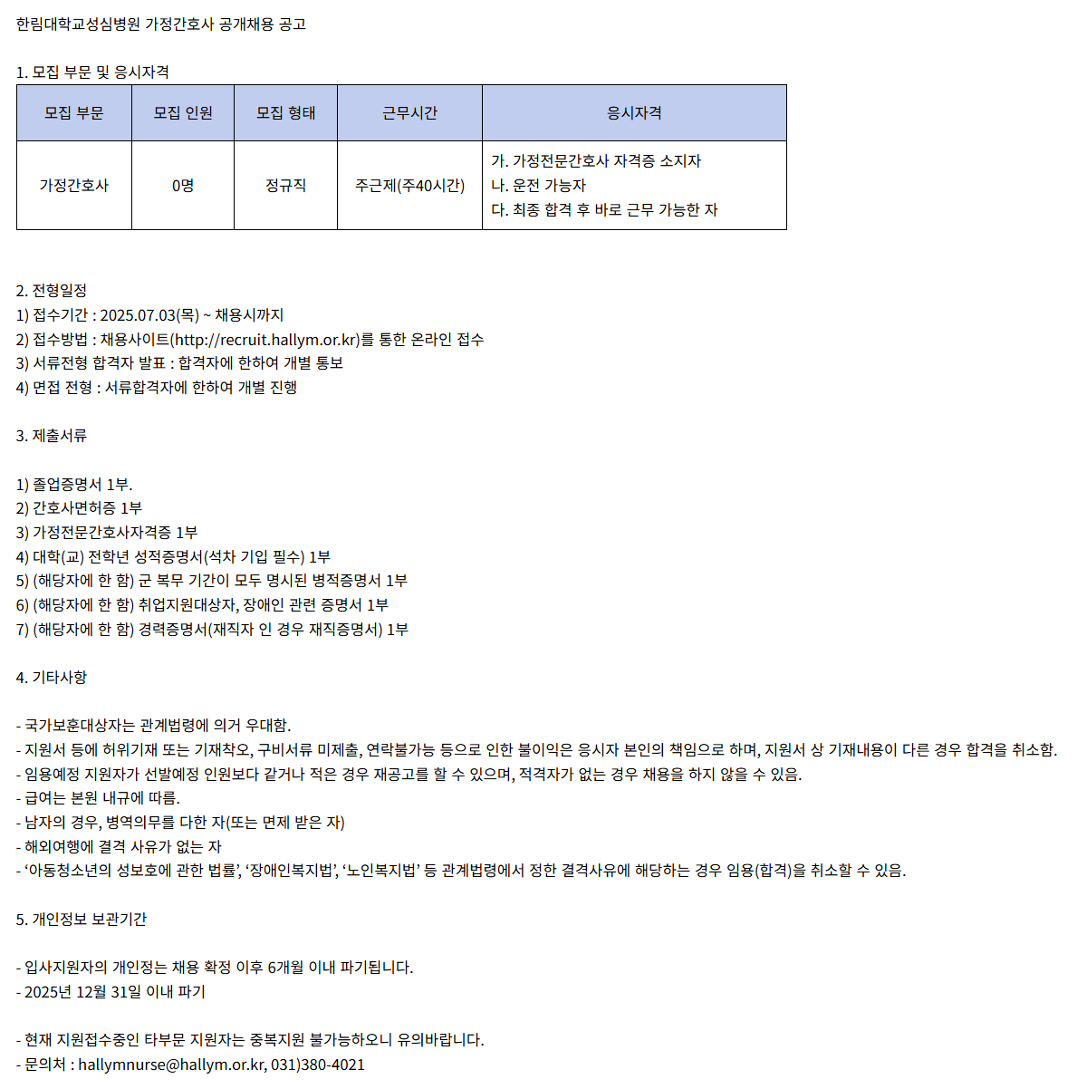- ÀÔ»çÁö¿øÀÚÀÇ °³ÀÎÁ¤´Â ä¿ë È®Á¤ ÀÌÈÄ 6°³¿ù À̳» ÆÄ±âµË´Ï´Ù.