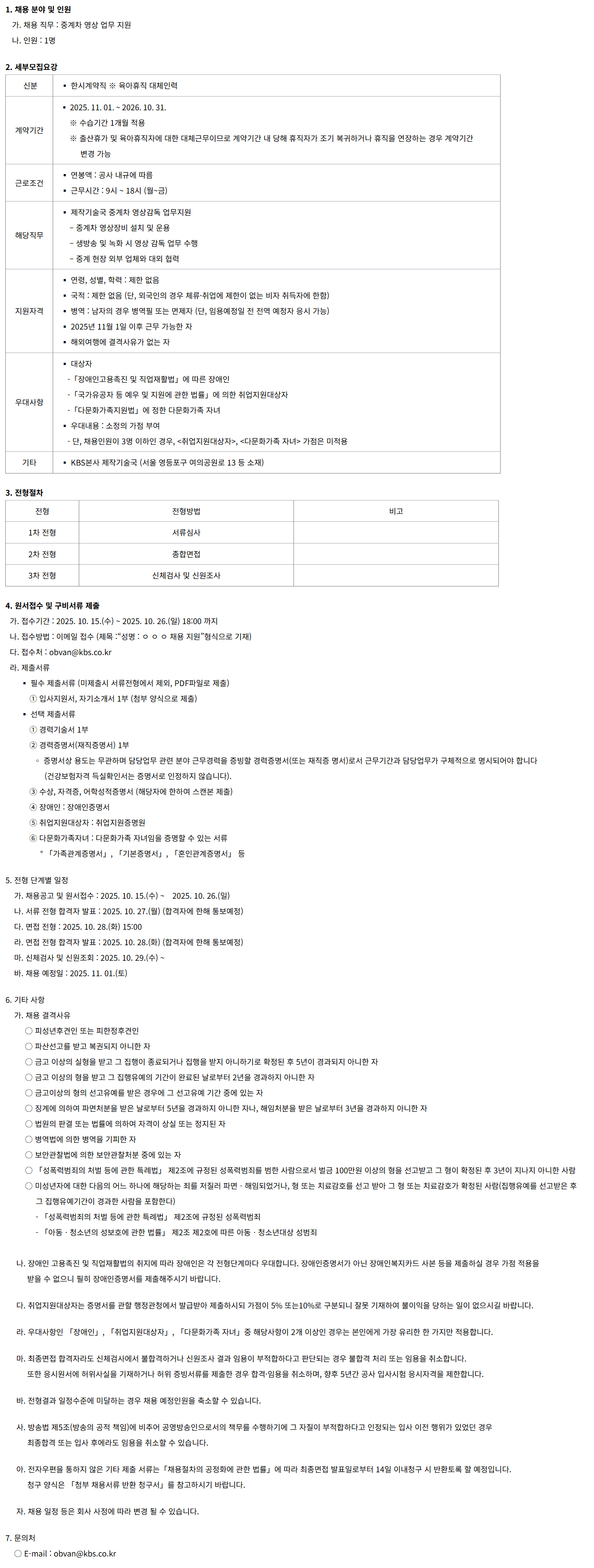 °¡. ä¿ë°ø°í ¹× ¿ø¼Á¢¼ö : 2025. 10. 15.(¼ö) ~¡¡2025. 10. 26.(ÀÏ)