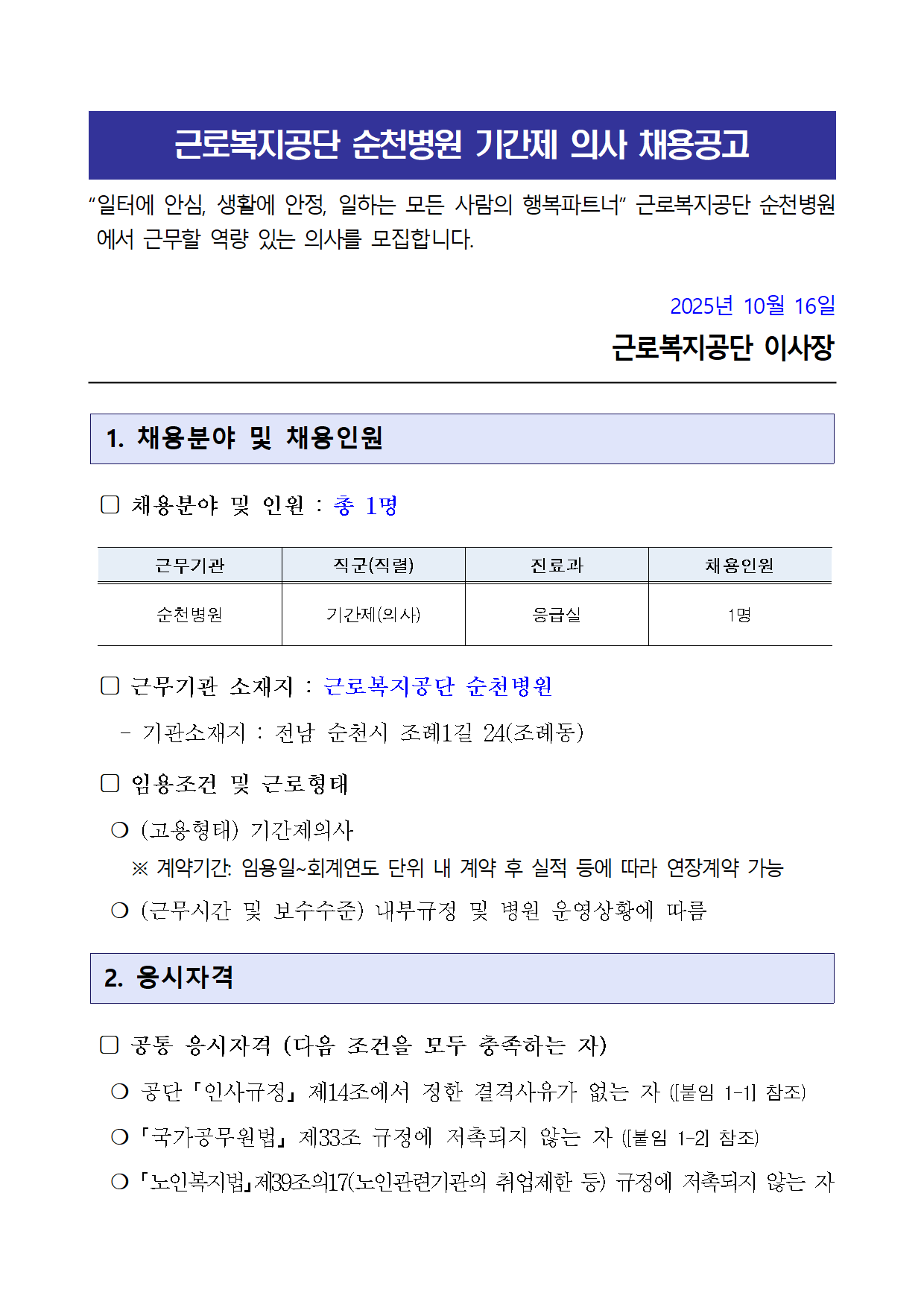 [¼øÃµº´¿ø] ±â°£Á¦ ÀÇ»ç(ÀÀ±Þ½Ç) ä¿ë °ø°í
