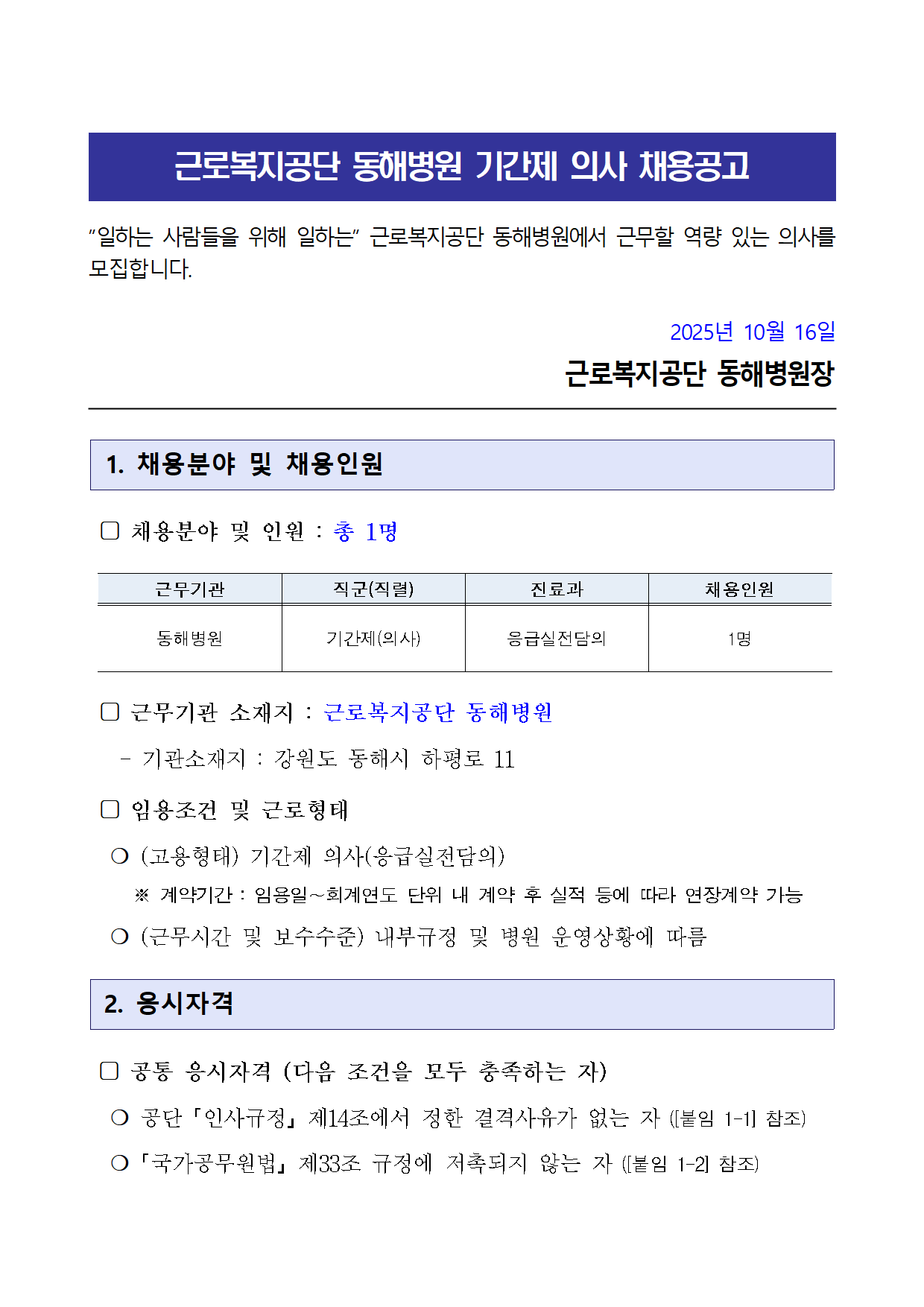 [µ¿Çغ´¿ø] ±â°£Á¦ ÀÇ»ç(ÀÀ±Þ½ÇÀü´ãÀÇ) ½Å±Ô ä¿ë