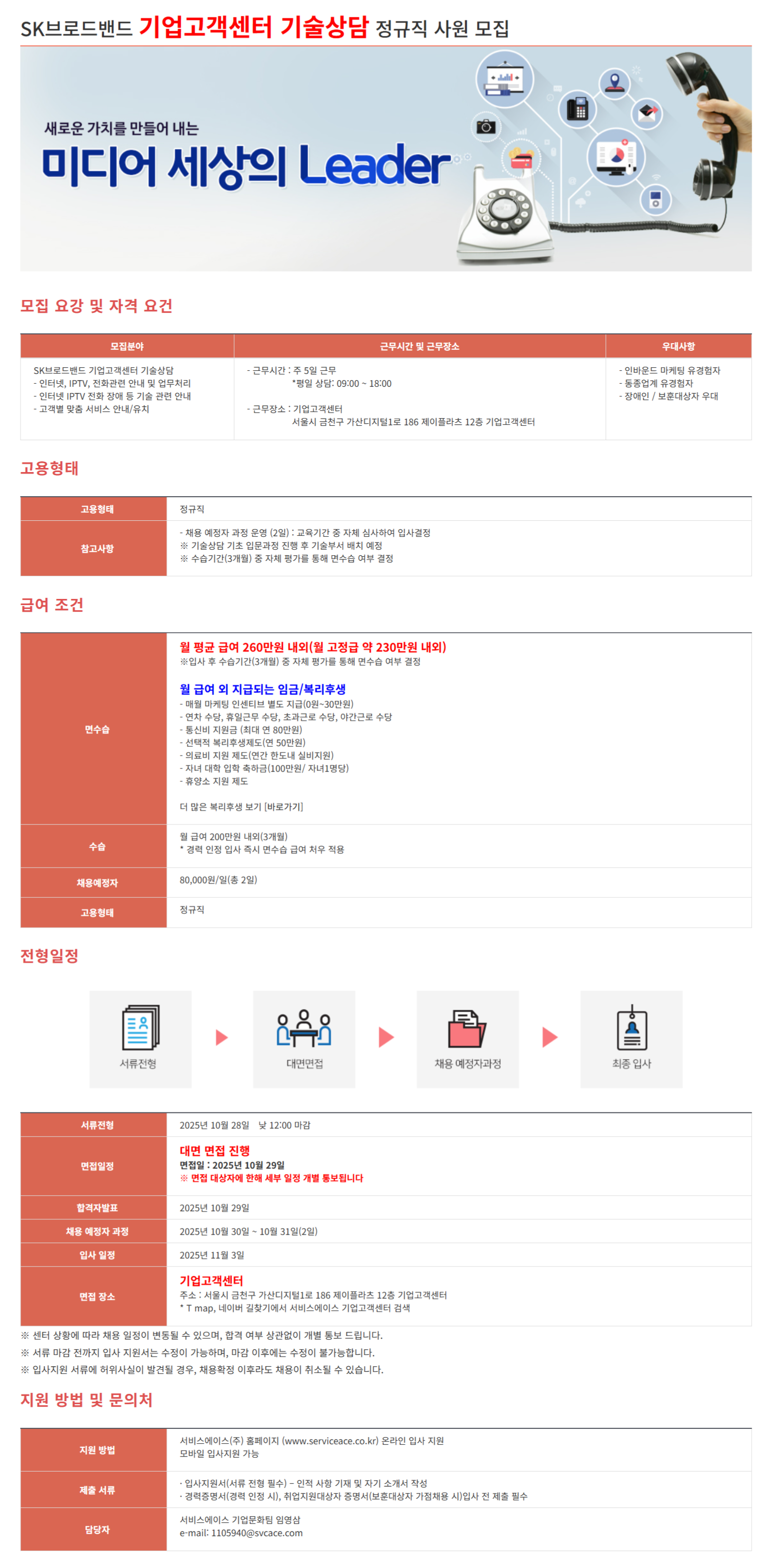 2025³â 11¿ù ±â¾÷°í°´¼¾ÅÍ ±â¼ú»ó´ã Á¤±ÔÁ÷ »ç¿ø ¸ðÁý