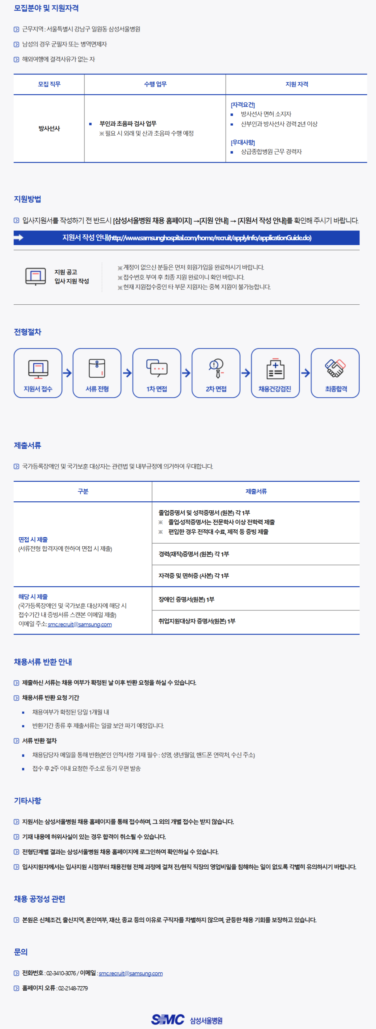 ¸ðÁý Á÷¹« ¼öÇà ¾÷¹« Áö¿ø ÀÚ°Ý ¹æ»ç¼±»ç ºÎÀΰú ÃÊÀ½ÆÄ °Ë»ç ¾÷¹« ¡Ø ÇÊ¿ä ½Ã ¿Ü·¡ ¹× »ê°ú ÃÊÀ½ÆÄ ¼öÇà ¿¹Á¤ [ÀÚ°Ý¿ä°Ç] ¹æ»ç¼±»ç ¸éÇã ¼ÒÁöÀÚ »êºÎÀΰú ¹æ»ç¼±»ç °æ·Â 2³â ÀÌ»ó [¿ì´ë»çÇ×] »ó±ÞÁ¾ÇÕº´¿ø ±Ù¹« °æ·ÂÀÚ