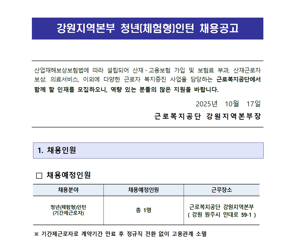 [°¿øÁö¿ªº»ºÎ] û³â(üÇèÇü)ÀÎÅÏ Ã¤¿ë