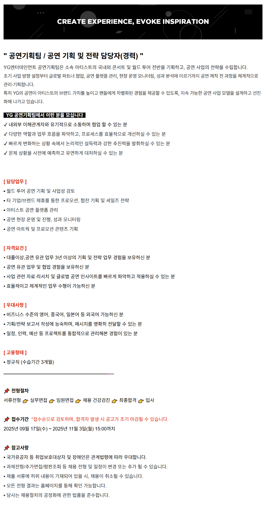 YG¿£ÅÍÅ×ÀÎ¸ÕÆ® °ø¿¬±âȹÆÀÀº ¼Ò¼Ó ¾ÆÆ¼½ºÆ®ÀÇ ±¹³»¿Ü ÄܼƮ ¹× ¿ùµå Åõ¾î Àü¹ÝÀ» ±âȹÇϰí, °ø¿¬ »ç¾÷ÀÇ Àü·«À» ¼ö¸³ÇÕ´Ï´Ù.