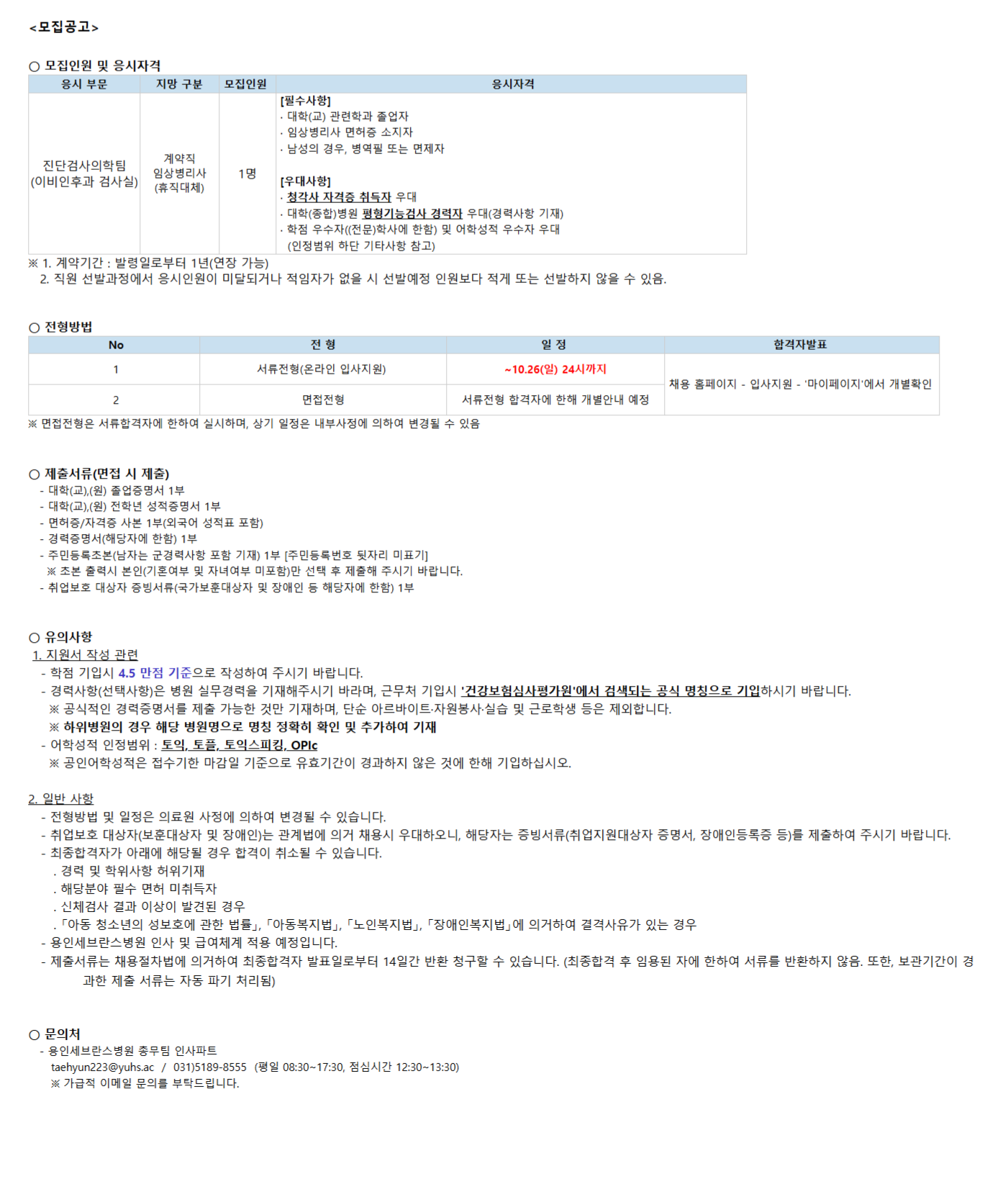 [¿ëÀÎ] Áø´Ü°Ë»çÀÇÇÐÆÀ(À̺ñÀÎÈİú °Ë»ç½Ç) ÈÞÁ÷´ëü ÀÓ»óº´¸®»ç(°è¾àÁ÷) ½Å±Ôä¿ë 25.10