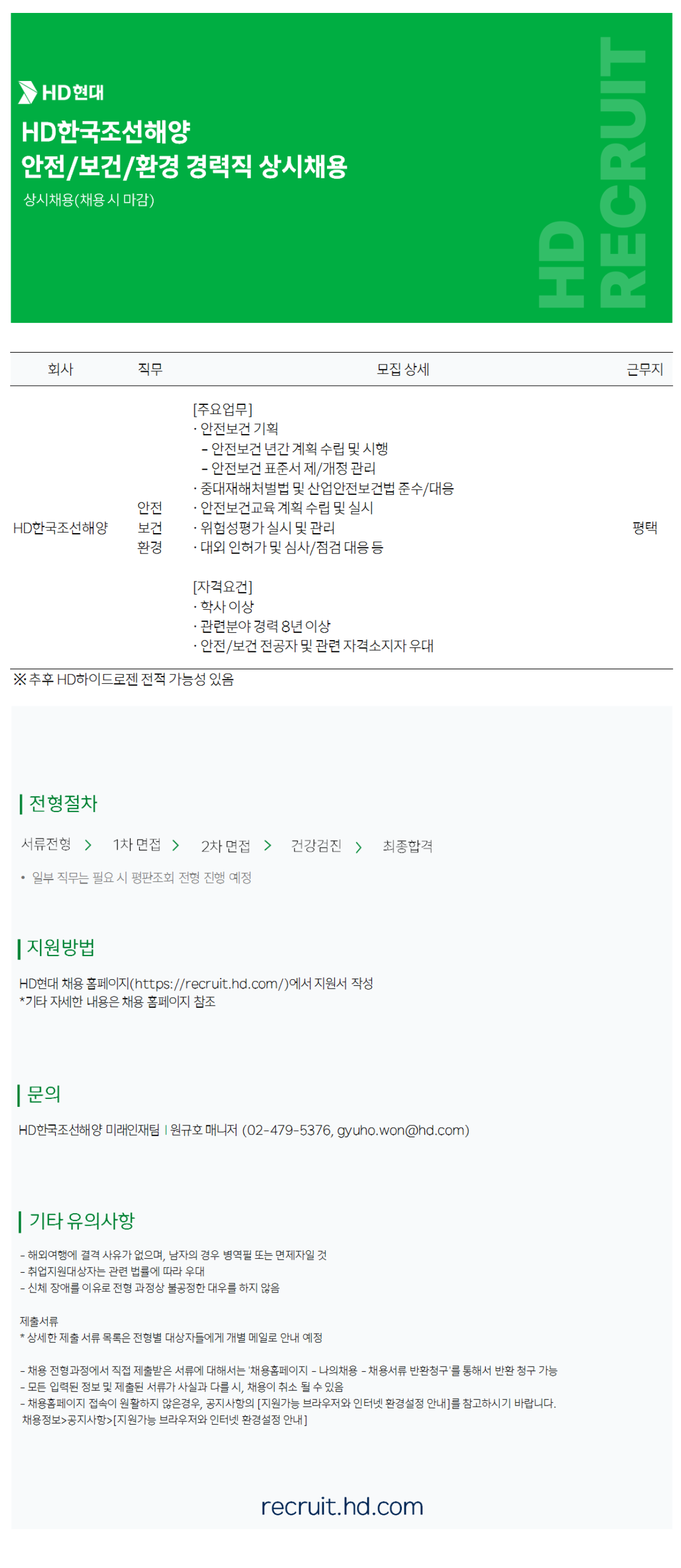 [HDÇѱ¹Á¶¼±Çؾç] ¾ÈÀü/º¸°Ç/ȯ°æ °æ·ÂÁ÷ »ó½Ãä¿ë