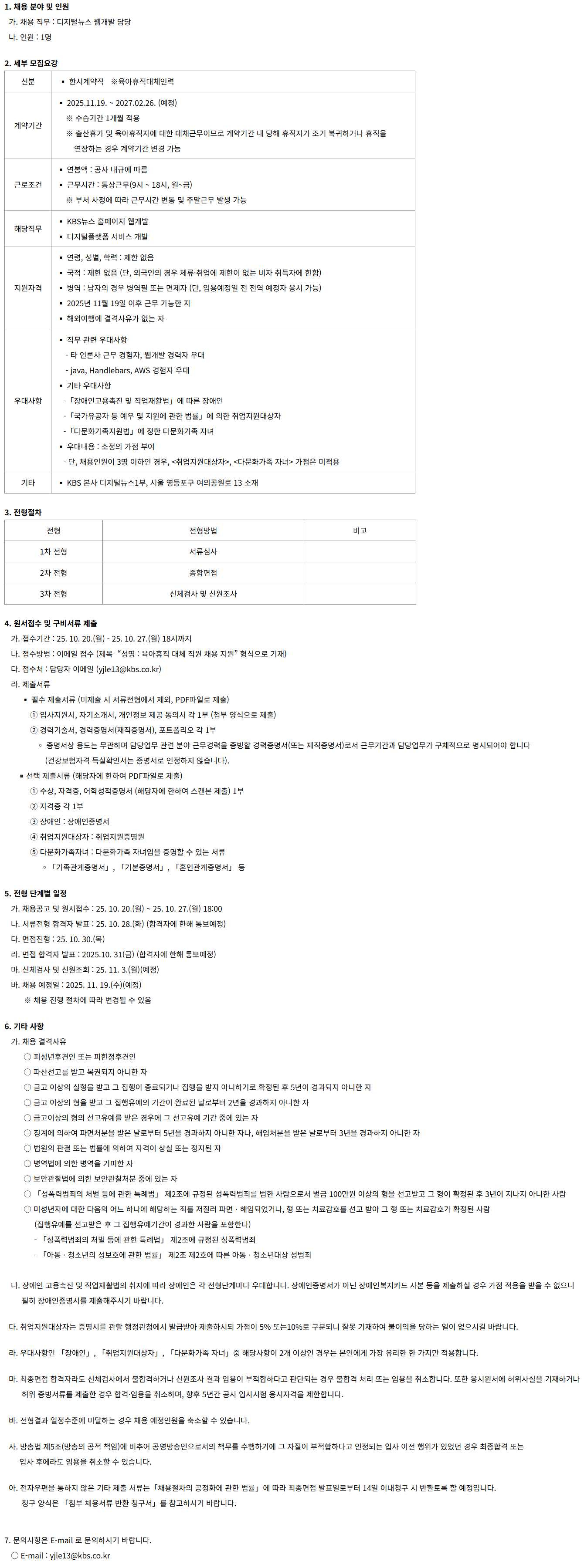 °¡. ä¿ë°ø°í ¹× ¿ø¼Á¢¼ö : 25. 10. 20.(¿ù) ~ 25. 10. 27.(¿ù) 18:00