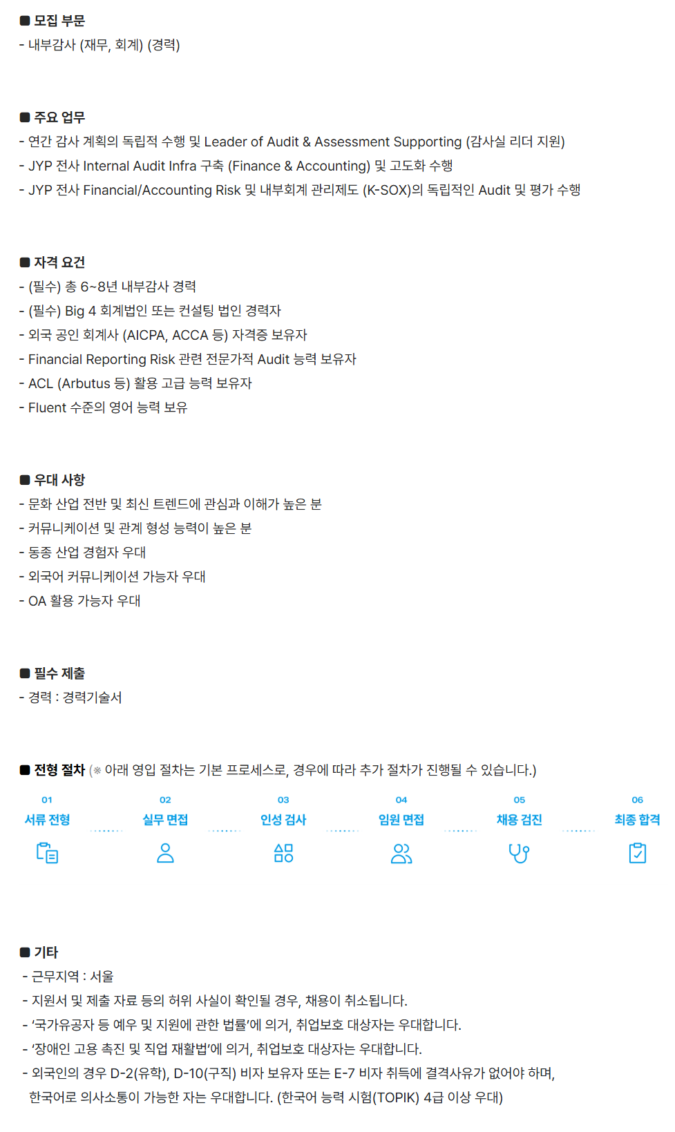 - JYP Àü»ç Internal Audit Infra ±¸Ãà (Finance & Accounting) ¹× °íµµÈ ¼öÇà