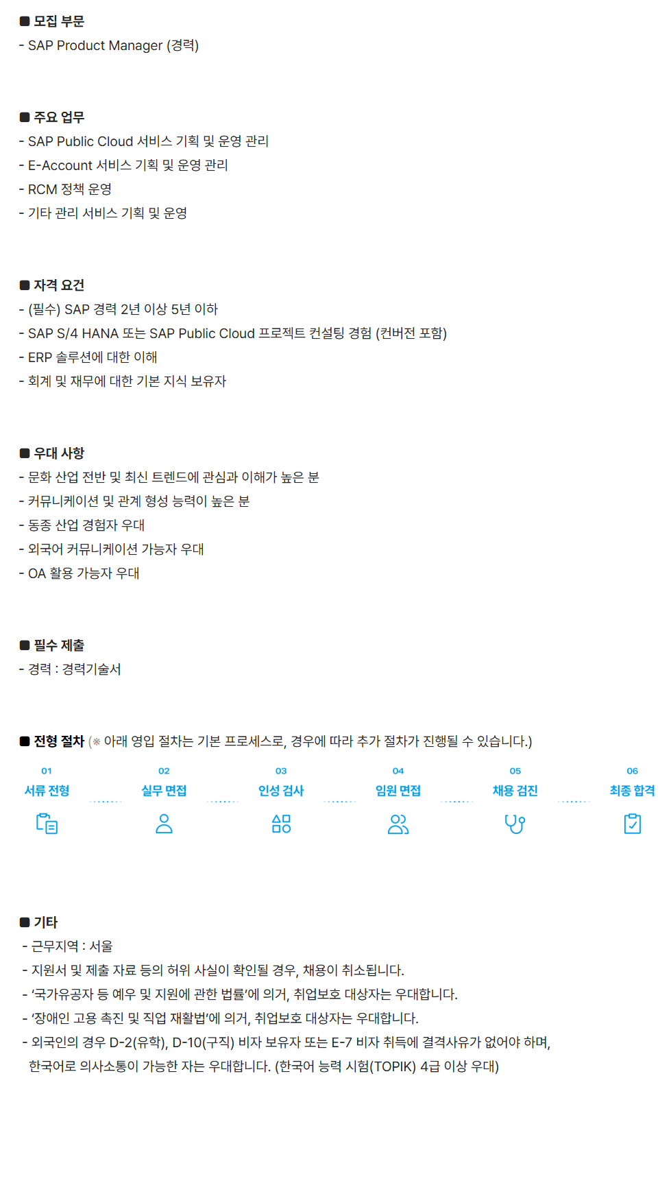 [JYP ENTERTAINMENT] SAP Product Manager (°æ·Â)