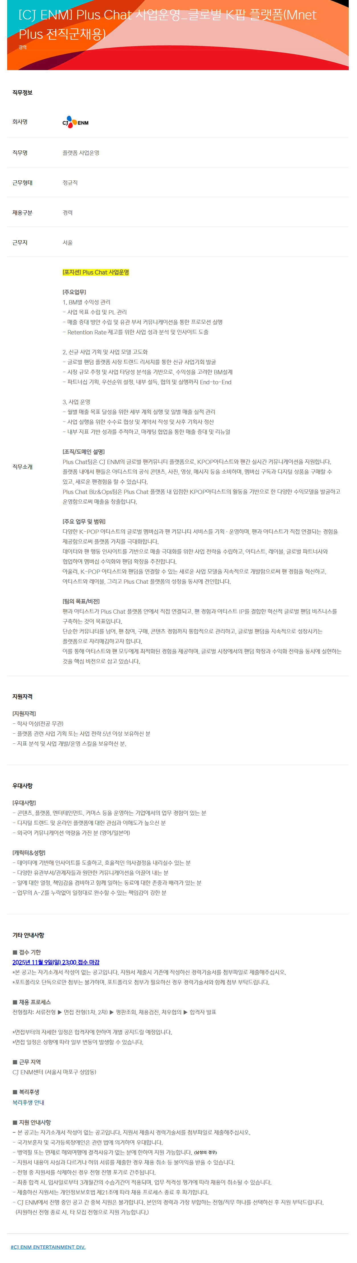 [CJ ENM] Plus Chat »ç¾÷¿î¿µ_±Û·Î¹ú KÆË Ç÷§Æû(Mnet Plus ÀüÁ÷±ºÃ¤¿ë)