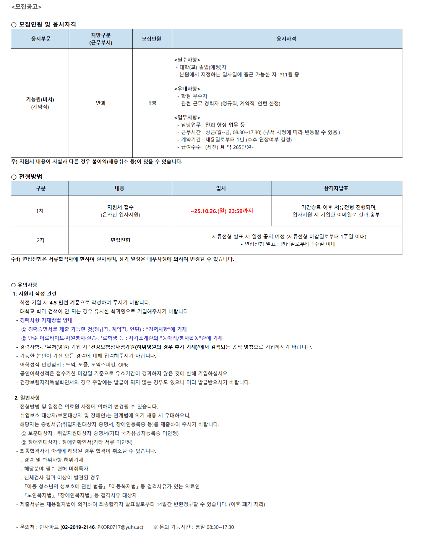 [ÀϹÝ-°³²] ºñ¼(°è¾àÁ÷) ¾È°ú 25.10 ¸ðÁý