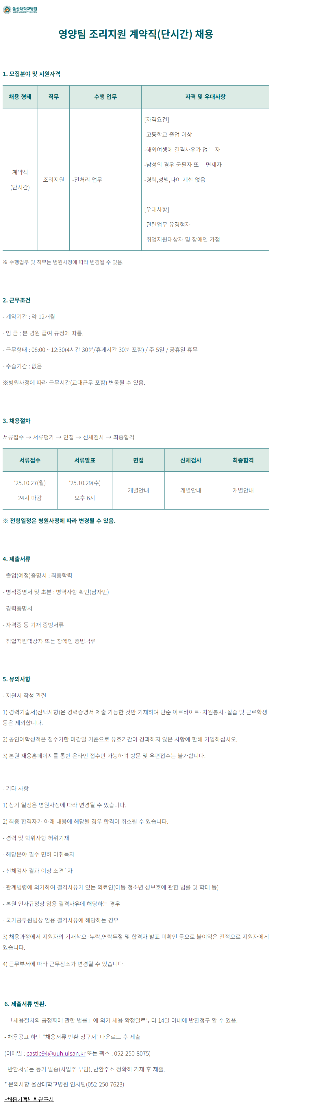 ¿µ¾çÆÀ Á¶¸®Áö¿ø °è¾àÁ÷(´Ü½Ã°£) ä¿ë
