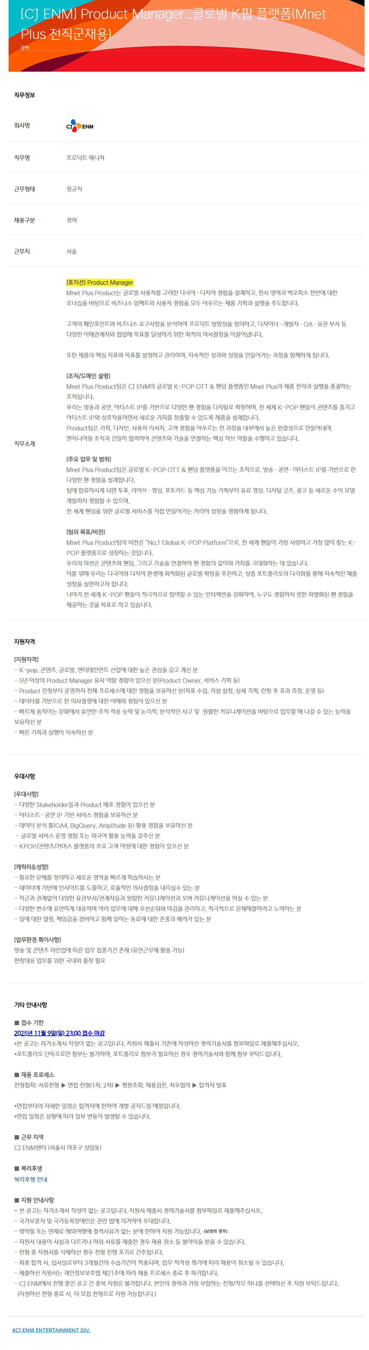 Mnet Plus ProductÆÀÀº CJ ENMÀÇ ±Û·Î¹ú K-POP OTT & ÆÒ´ý Ç÷§ÆûÀÎ Mnet PlusÀÇ Á¦Ç° Àü·«°ú ½ÇÇàÀ» ÃѰýÇÏ´Â Á¶Á÷ÀÔ´Ï´Ù.
