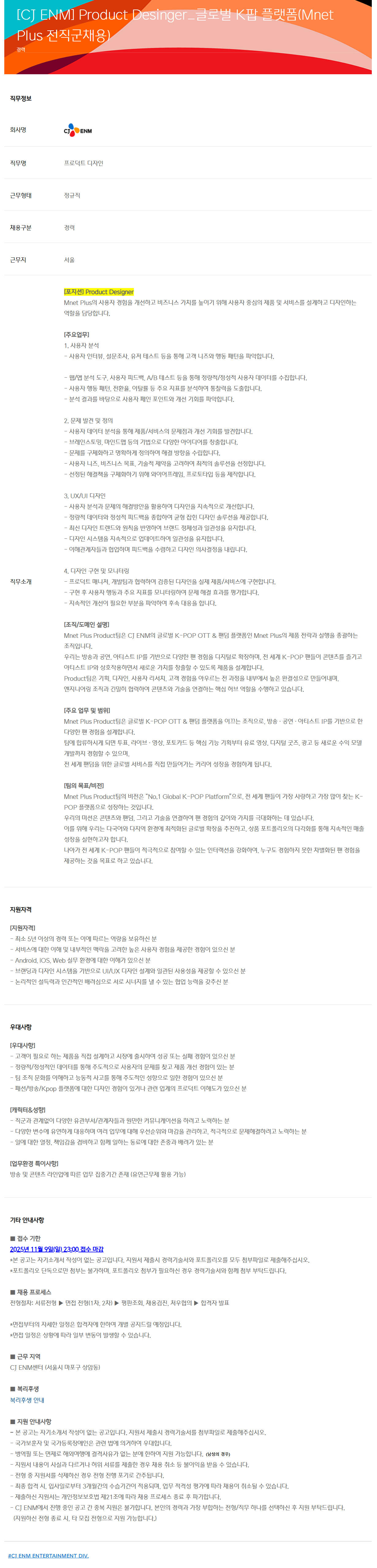Mnet PlusÀÇ »ç¿ëÀÚ °æÇèÀ» °³¼±ÇÏ°í ºñÁî´Ï½º °¡Ä¡¸¦ ³ôÀ̱â À§ÇØ »ç¿ëÀÚ Áß½ÉÀÇ Á¦Ç° ¹× ¼ºñ½º¸¦ ¼³°èÇÏ°í µðÀÚÀÎÇÏ´Â ¿ªÇÒÀ» ´ã´çÇÕ´Ï´Ù.