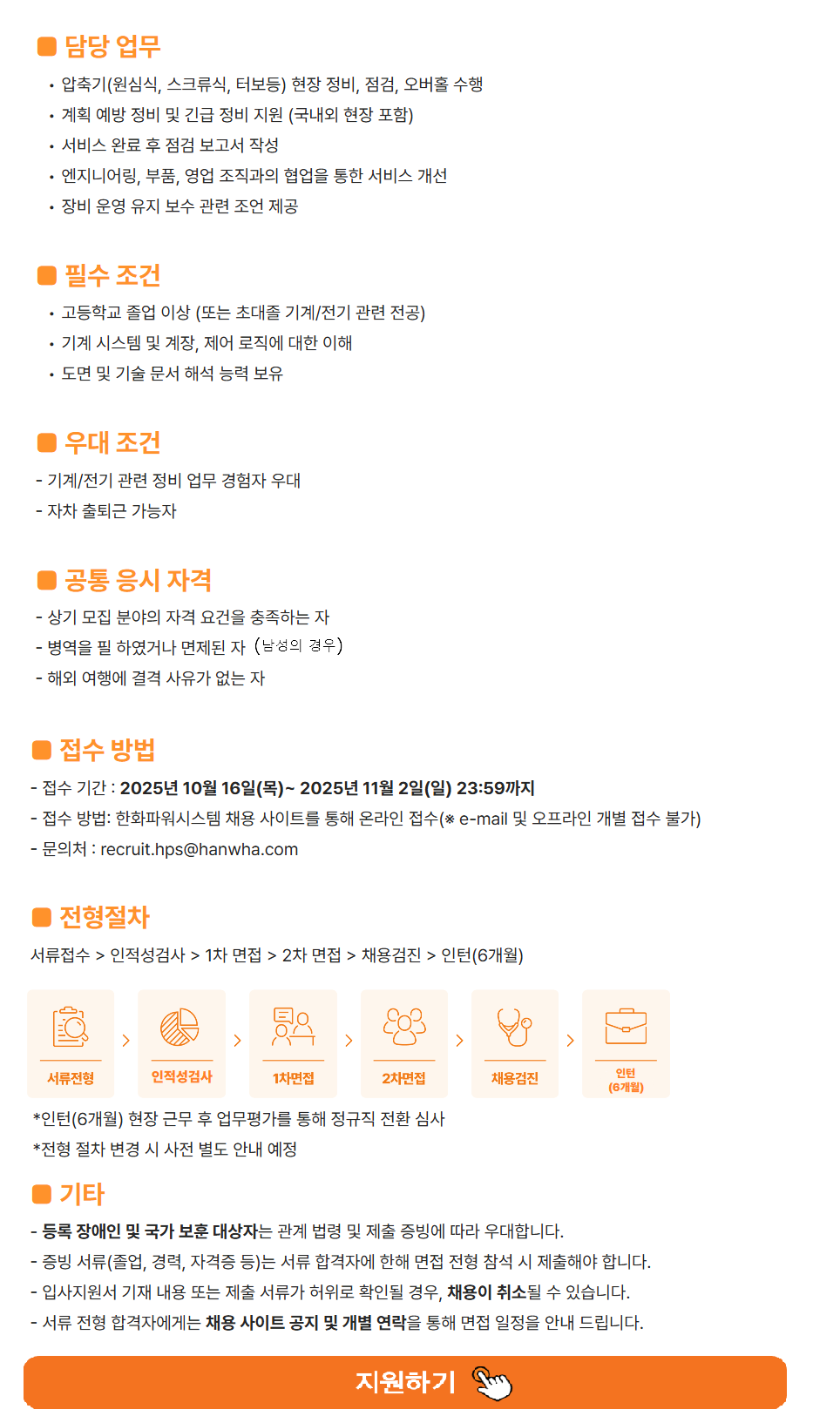 [ÇÑÈÆÄ¿ö½Ã½ºÅÛ] Á¤ºñ °úÁ¦ ¼ºñ½º(Field Service Engineer) ä¿ë¿¬°èÇü ÀÎÅÏ