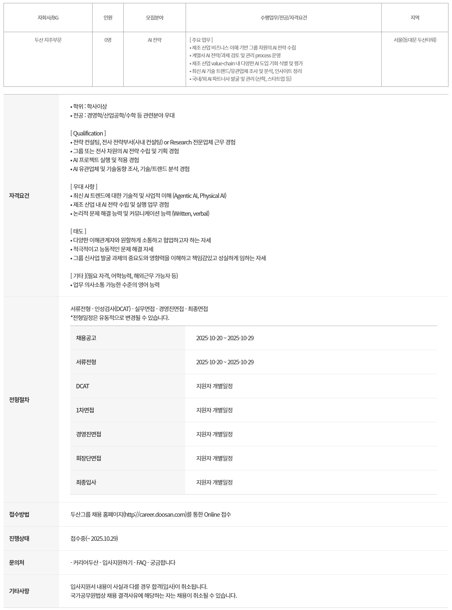 µÎ»ê±×·ì ä¿ë ȨÆäÀÌÁö(http://career.doosan.com)¸¦ ÅëÇÑ Online Á¢¼ö