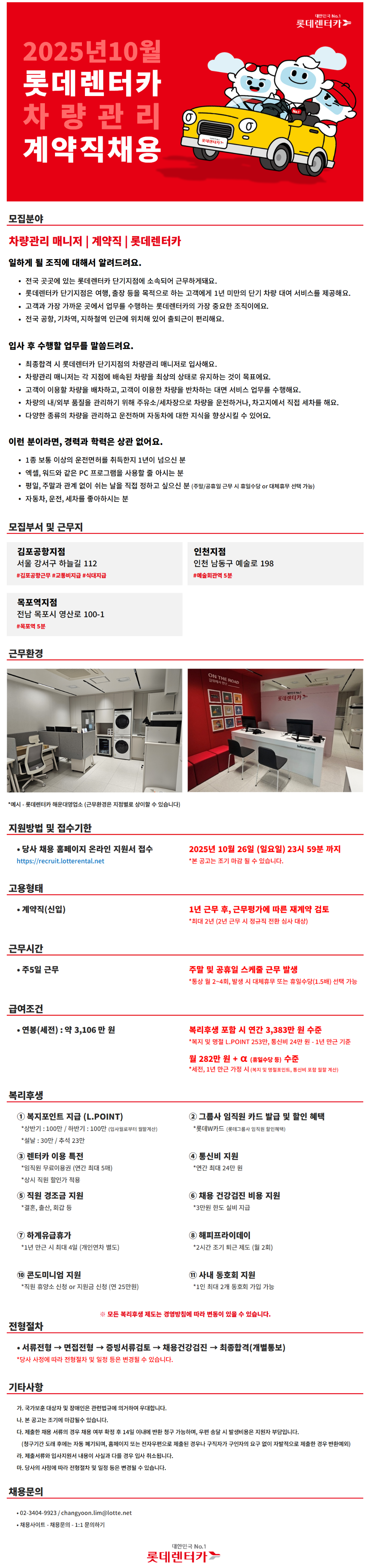 25³â 10¿ù °è¾àÁ÷(½ÅÀÔ) - Â÷·®°ü¸®(¼öµµ±Ç/¸ñÆ÷)