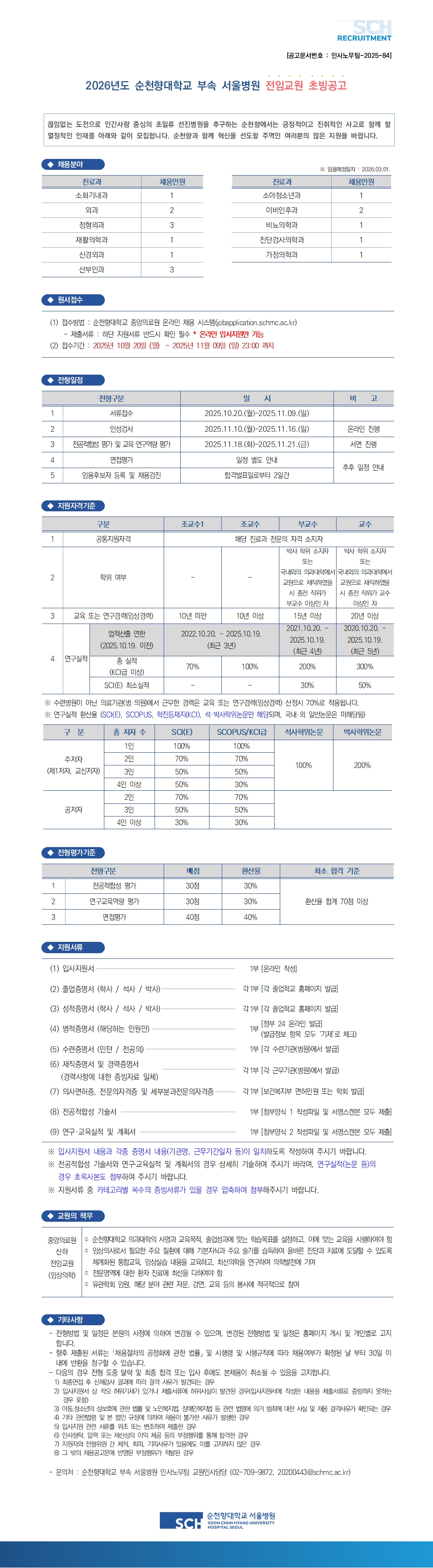 2026³âµµ ¼øÃµÇâ´ëÇб³ ºÎ¼Ó ¼¿ïº´¿ø ÀüÀÓ±³¿ø Ãʺù°ø°í