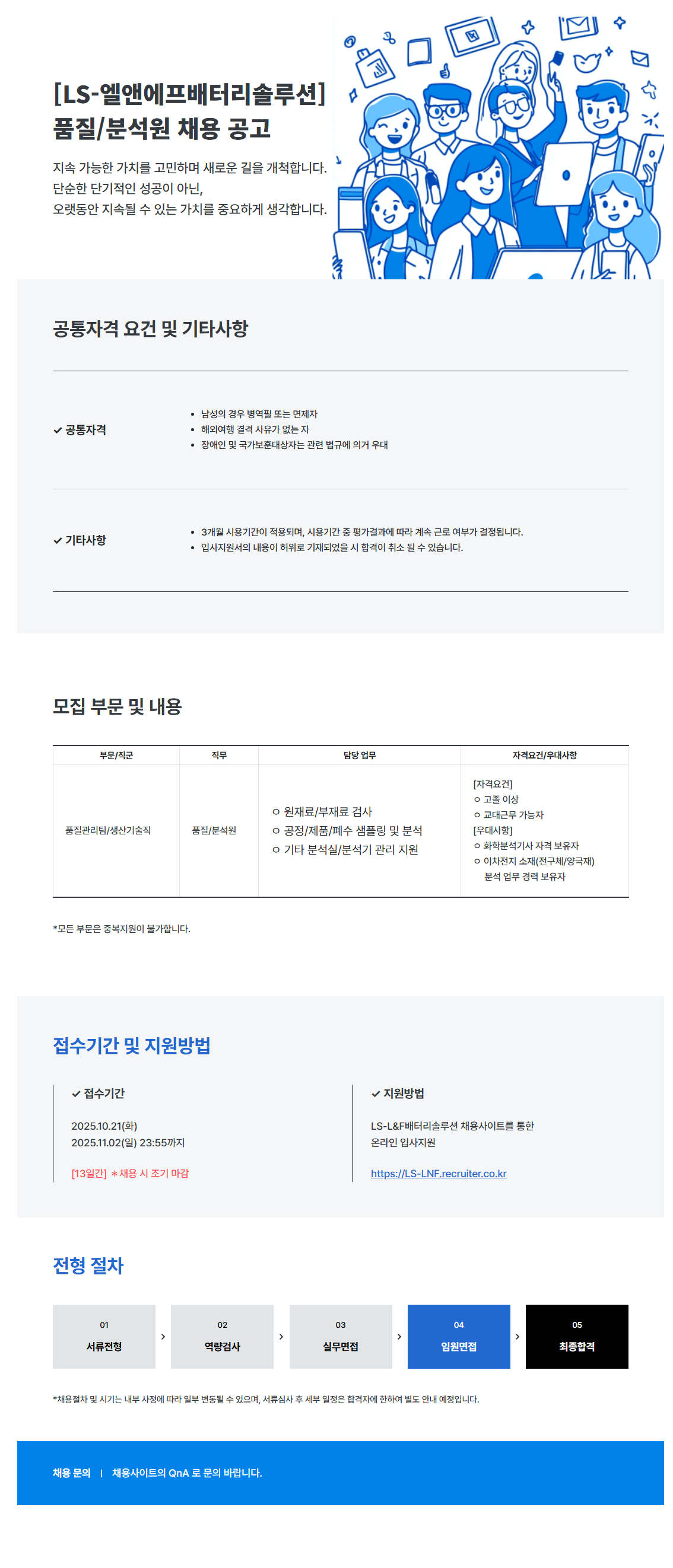 ¸ðÁý ºÎ¹® ¹× ³»¿ë ºÎ¹®/Á÷±º Á÷¹« ´ã´ç ¾÷¹« ÀÚ°Ý¿ä°Ç/¿ì´ë»çÇ× Ç°Áú°ü¸®ÆÀ/»ý»ê±â¼úÁ÷ ǰÁú/ºÐ¼®¿ø ¤· ¿øÀç·á/ºÎÀç·á °Ë»ç ¤· °øÁ¤/Á¦Ç°/Æó¼ö »ùÇøµ ¹× ºÐ¼® ¤· ±âŸ ºÐ¼®½Ç/ºÐ¼®±â °ü¸® Áö¿ø [ÀÚ°Ý¿ä°Ç] ¤· °íÁ¹ ÀÌ»ó ¤· ±³´ë±Ù¹« °¡´ÉÀÚ [¿ì´ë»çÇ×] ¤· È­Çкм®±â»ç ÀÚ°Ý º¸À¯ÀÚ ¤· ÀÌÂ÷ÀüÁö ¼ÒÀç(Àü±¸Ã¼/¾ç±ØÀç) ºÐ¼® ¾÷¹« °æ·Â º¸À¯ÀÚ *¸ðµç ºÎ¹®Àº Áߺ¹Áö¿øÀÌ ºÒ°¡ÇÕ´Ï´Ù.