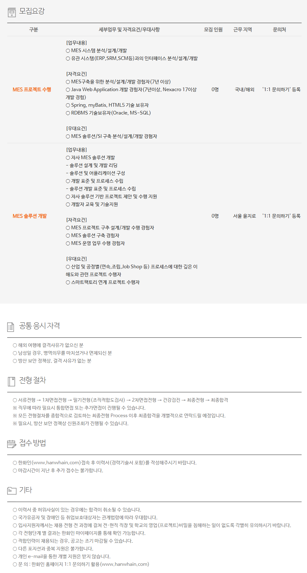 ¡Û MES ¼Ö·ç¼Ç/SI ±¸Ãà ºÐ¼®/¼³°è/°³¹ß °æÇøÀÚ 0¸í ±¹³»/ÇØ¿Ü '1:1 ¹®ÀÇÇϱâ' µî·Ï