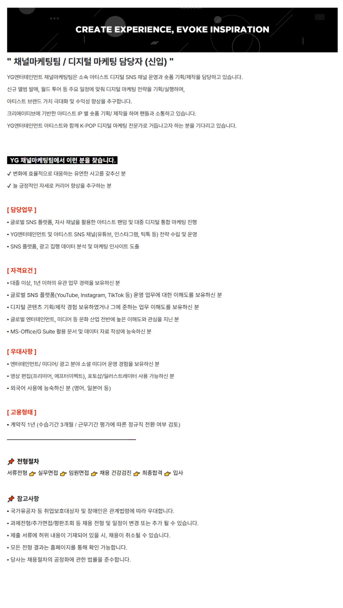 YG¿£ÅÍÅ×ÀÎ¸ÕÆ® ä³Î¸¶ÄÉÆÃÆÀÀº ¼Ò¼Ó ¾ÆÆ¼½ºÆ® µðÁöÅÐ SNS ä³Î ¿î¿µ°ú ¼ôÆû ±âȹ/Á¦ÀÛÀ» ´ã´çÇϰí ÀÖ½À´Ï´Ù.