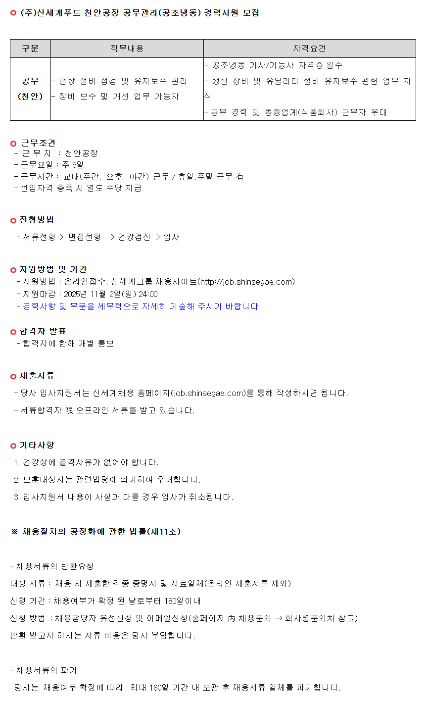 (ÁÖ)½Å¼¼°èǪµå õ¾È°øÀå °ø¹«°ü¸®(°øÁ¶³Ãµ¿) °æ·Â»ç¿ø ¸ðÁý
