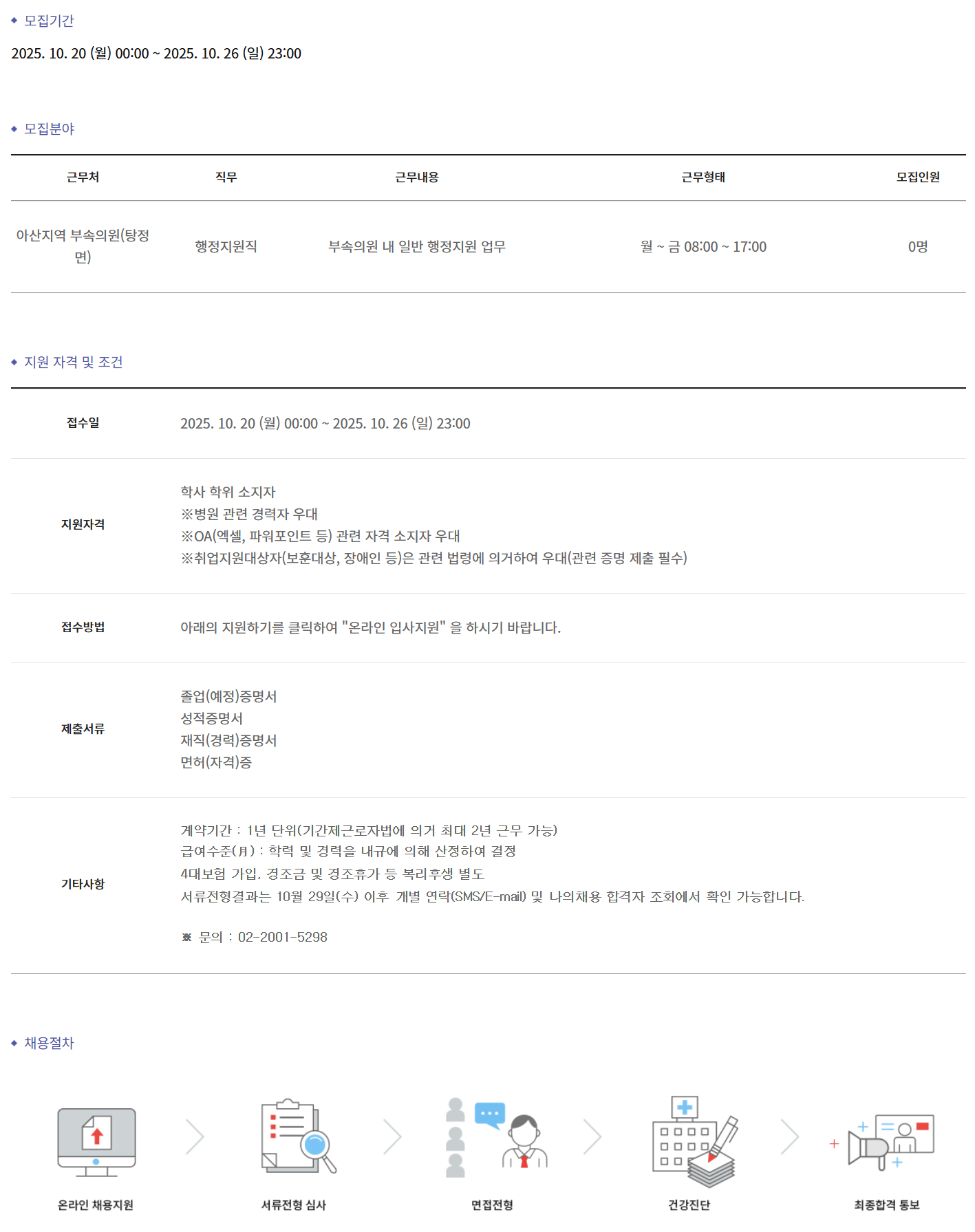 ±Ù¹«Ã³ Á÷¹« ±Ù¹«³»¿ë ±Ù¹«ÇüÅ ¸ðÁýÀοø ¾Æ»êÁö¿ª ºÎ¼ÓÀÇ¿ø(ÅÁÁ¤¸é) ÇàÁ¤Áö¿øÁ÷ ºÎ¼ÓÀÇ¿ø ³» ÀÏ¹Ý ÇàÁ¤Áö¿ø ¾÷¹« ¿ù ~ ±Ý 08:00 ~ 17:00 0¸í