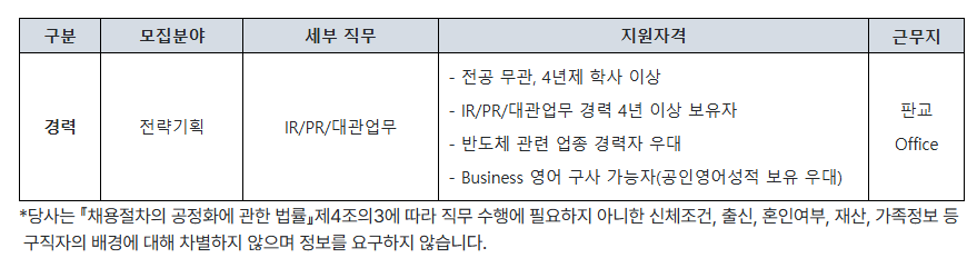 [°æ·Â] Àü·«±âȹÆÀ °æ·Â»ç¿ø ¸ðÁý(IR/PR/´ë°ü¾÷¹«)