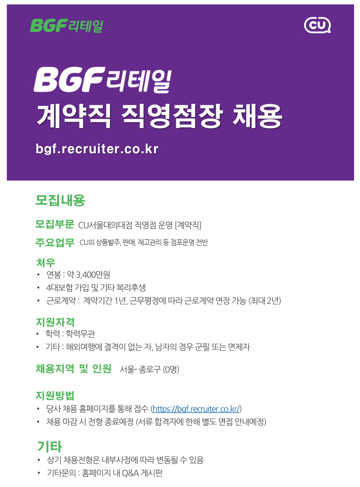 [BGF¸®Å×ÀÏ] 2025³â °è¾àÁ÷ Á÷¿µÁ¡Àå ä¿ë - ¼¿ï´ëÀÇ´ëÁ¡