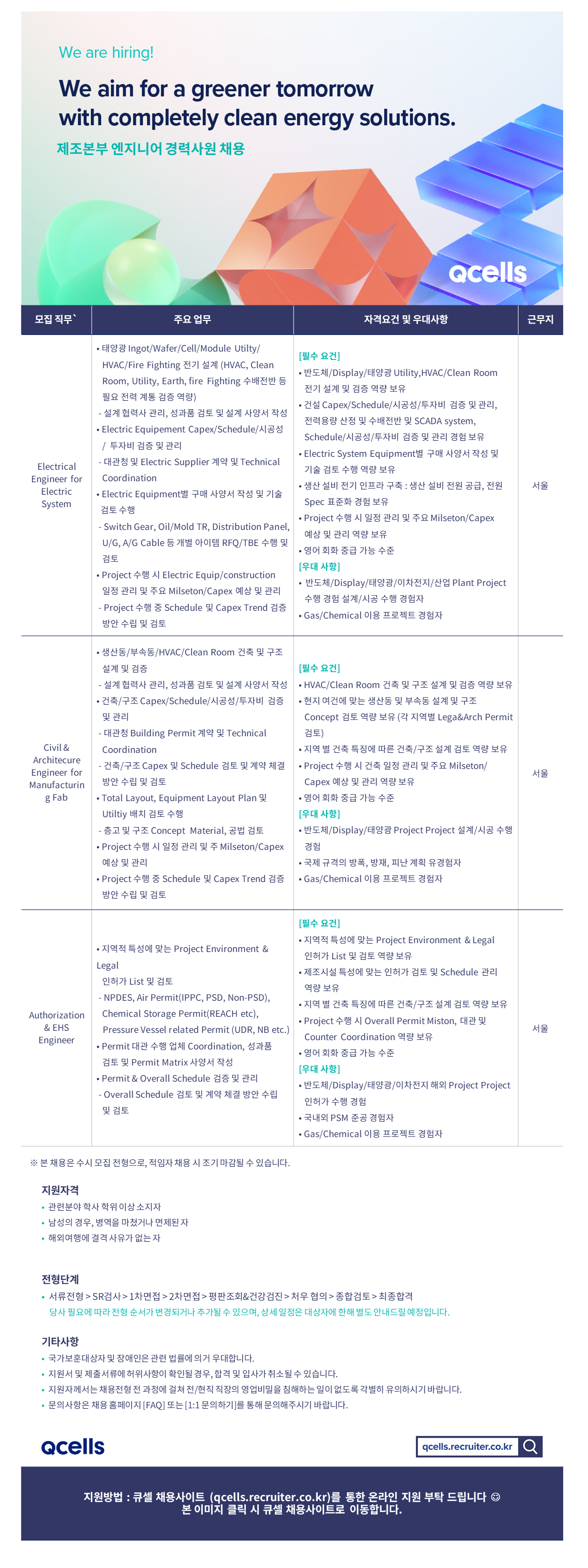 [ÇÑȼַù¼Ç Å¥¼¿] Plant Engineer °æ·Â»ç¿ø ä¿ë