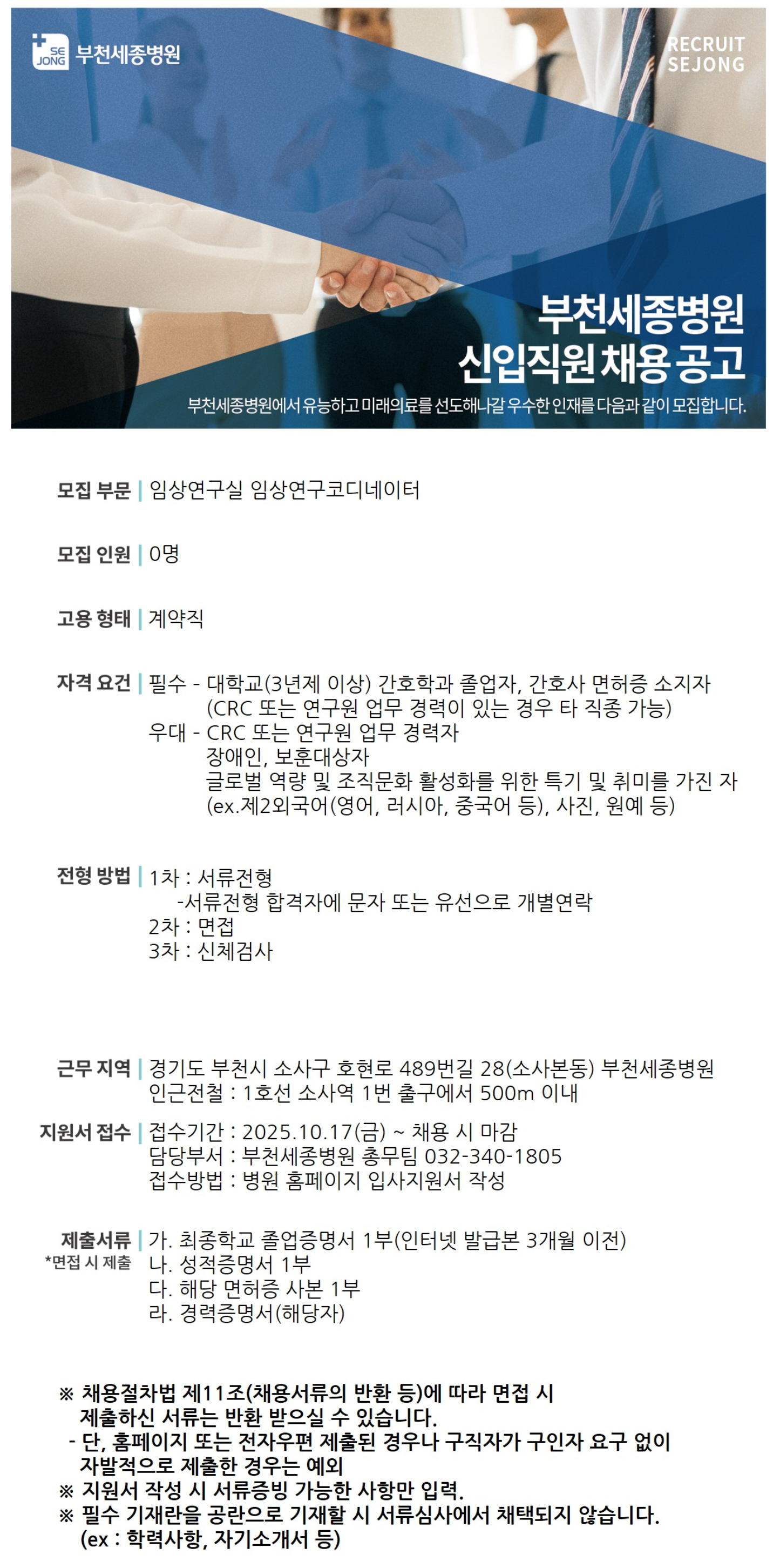 [ºÎõ¼¼Á¾º´¿ø] Àӻ󿬱¸½Ç Àӻ󿬱¸ÄÚµð³×ÀÌÅÍ Ã¤¿ë°ø°í(°è¾àÁ÷)
