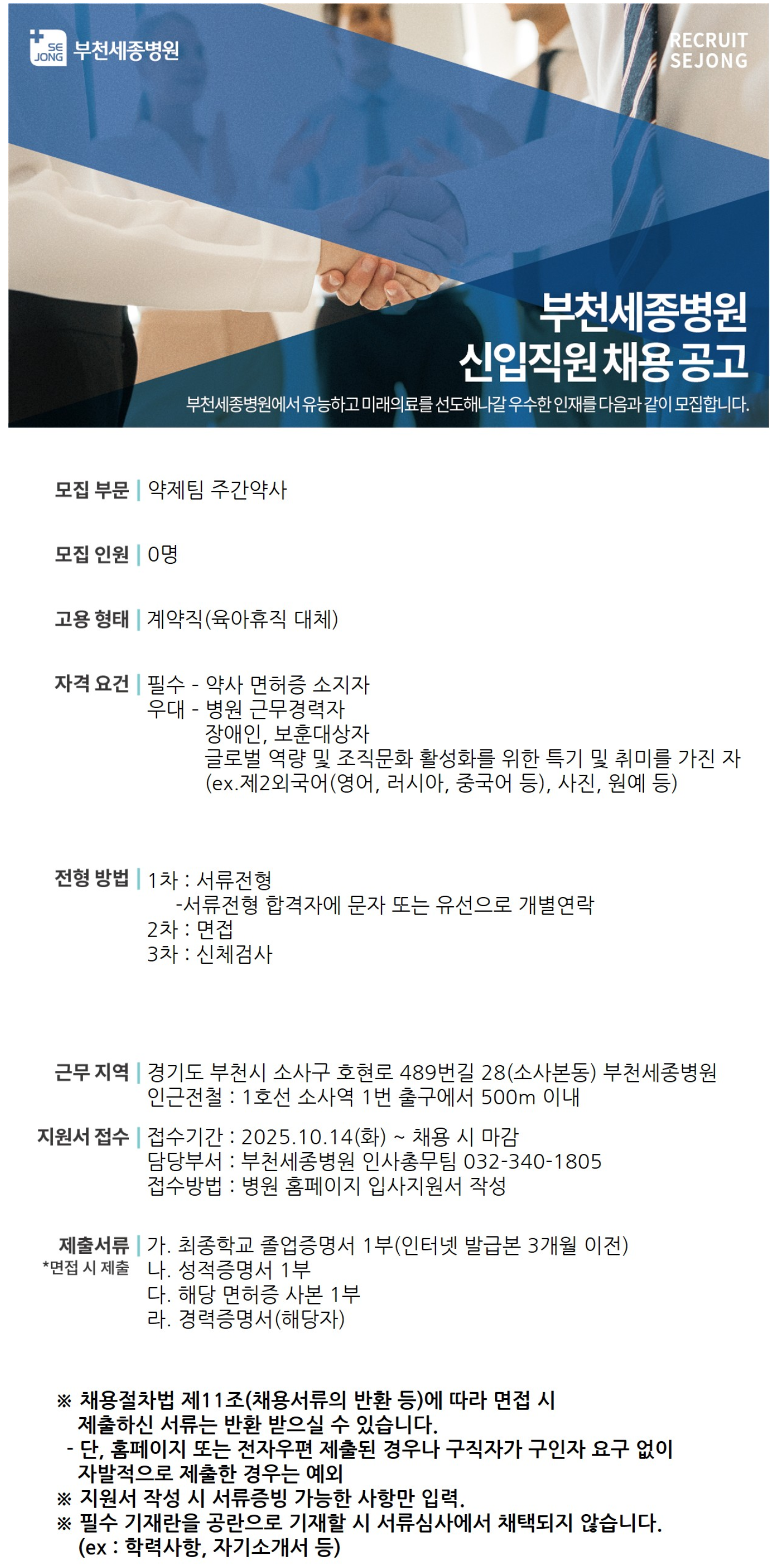 [ºÎõ¼¼Á¾º´¿ø] ¾àÁ¦ÆÀ ÁÖ°£¾à»ç ä¿ë°ø°í(°è¾àÁ÷)