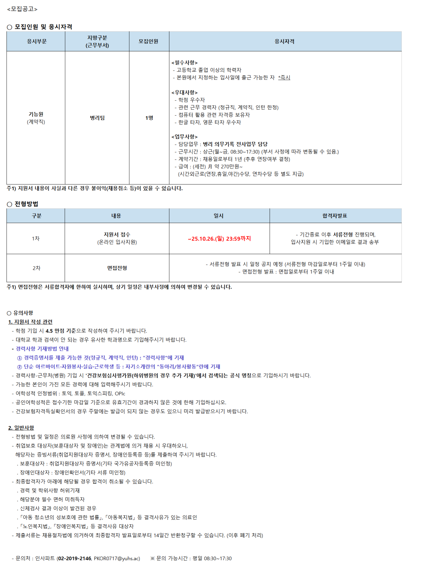 [ÀϹÝ-°³²] ±â´É¿ø(°è¾àÁ÷) º´¸®ÆÀ 25.10 ¸ðÁý