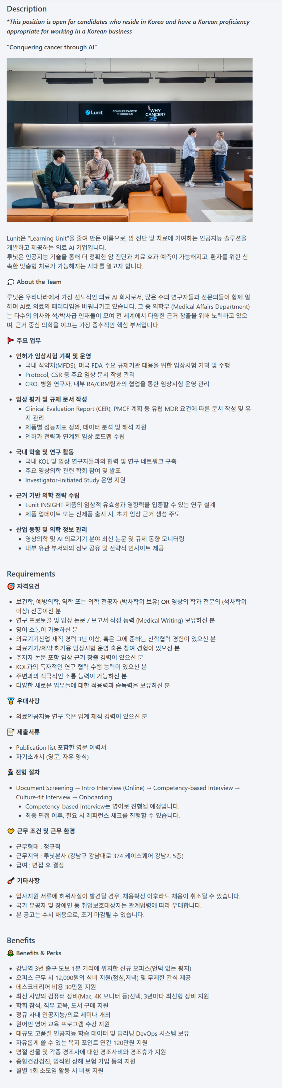 (Seoul) Senior Clinical Scientist ¡¤ Lunit INSIGHT
