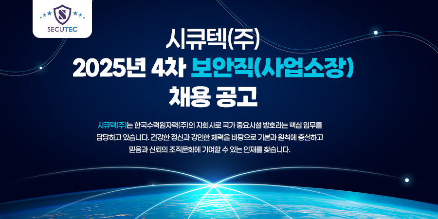 Ãáõ¼ö·Â º¸¾È°æºñÆÀ | ÆÀÀå | º¸¾ÈÁ÷ 4±Þ | |||