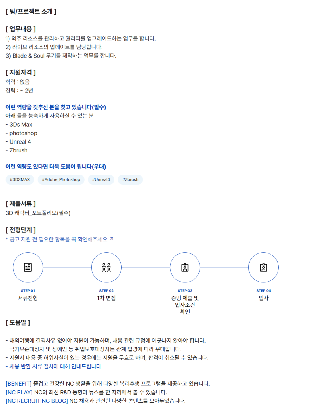 3) Blade & Soul ¹«±â¸¦ Á¦ÀÛÇÏ´Â ¾÷¹«¸¦ ÇÕ´Ï´Ù.