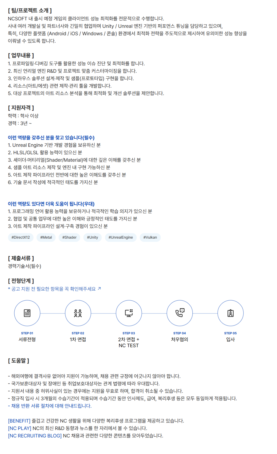 »ç³» ¿©·¯ °³¹ß½Ç ¹× ÆÄÆ®³Ê»ç¿Í ±ä¹ÐÈ÷ Çù¾÷Çϸç Unity / Unreal ¿£Áø ±â¹ÝÀÇ ÆÛÆ÷¸Õ½º Æ©´×À» ´ã´çÇϰí ÀÖÀ¸¸ç,