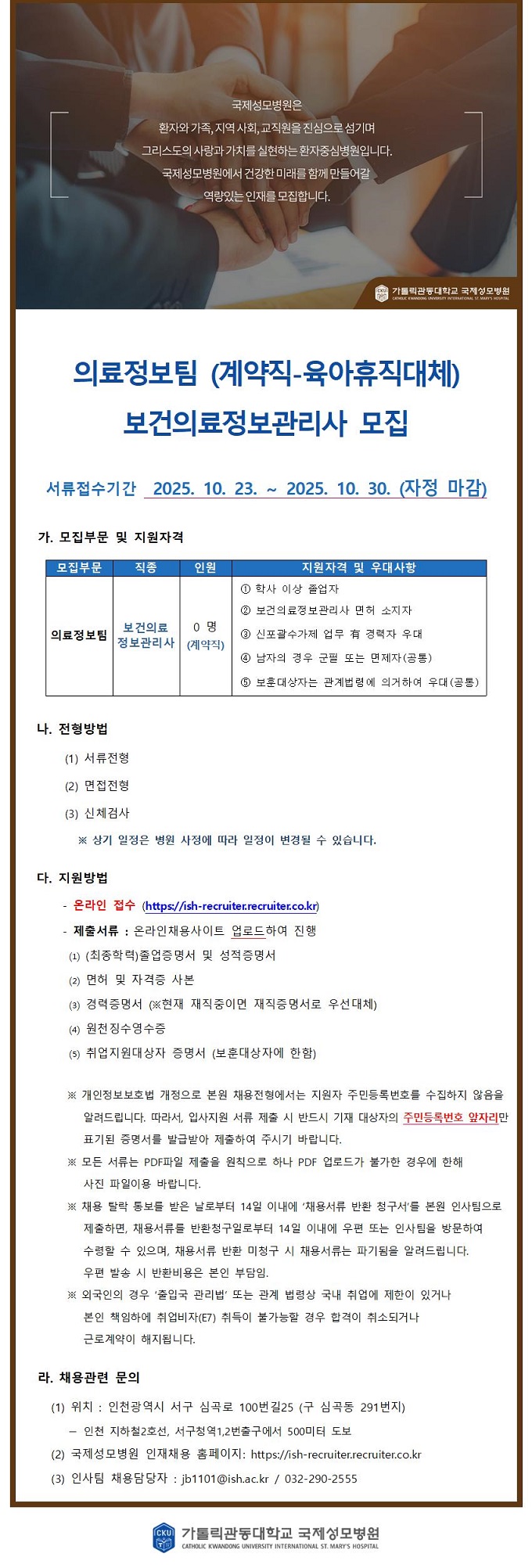 ÀÇ·áÁ¤º¸ÆÀ (°è¾àÁ÷-À°¾ÆÈÞÁ÷´ëü) º¸°ÇÀÇ·áÁ¤º¸°ü¸®»ç ¸ðÁý
