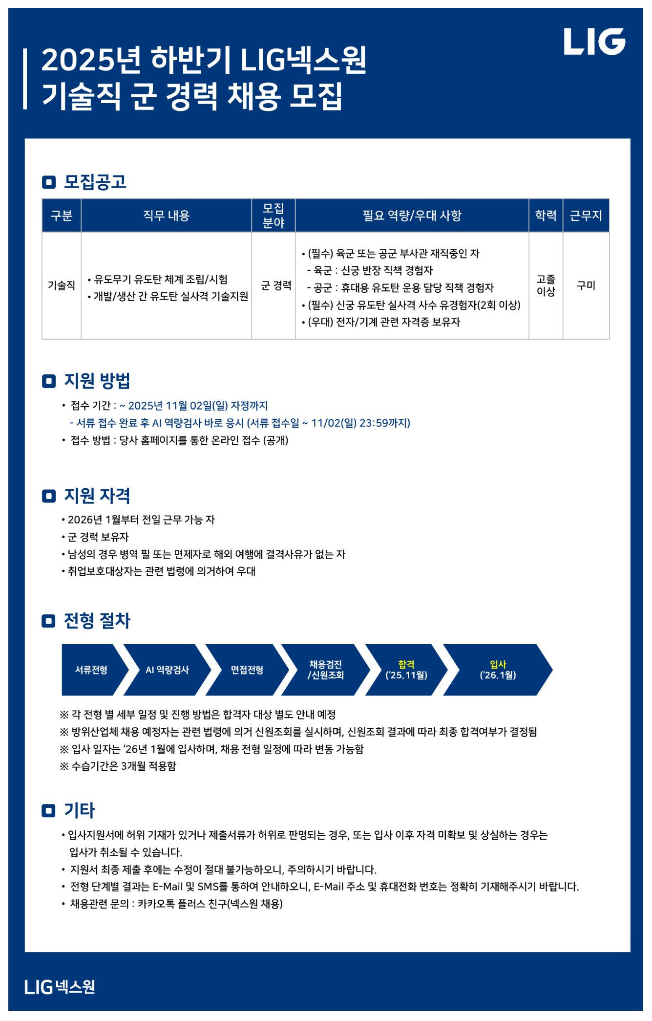 [LIG³Ø½º¿ø] 2025³â ÇϹݱ⠱â¼úÁ÷ ±º °æ·Â ä¿ë ¸ðÁý