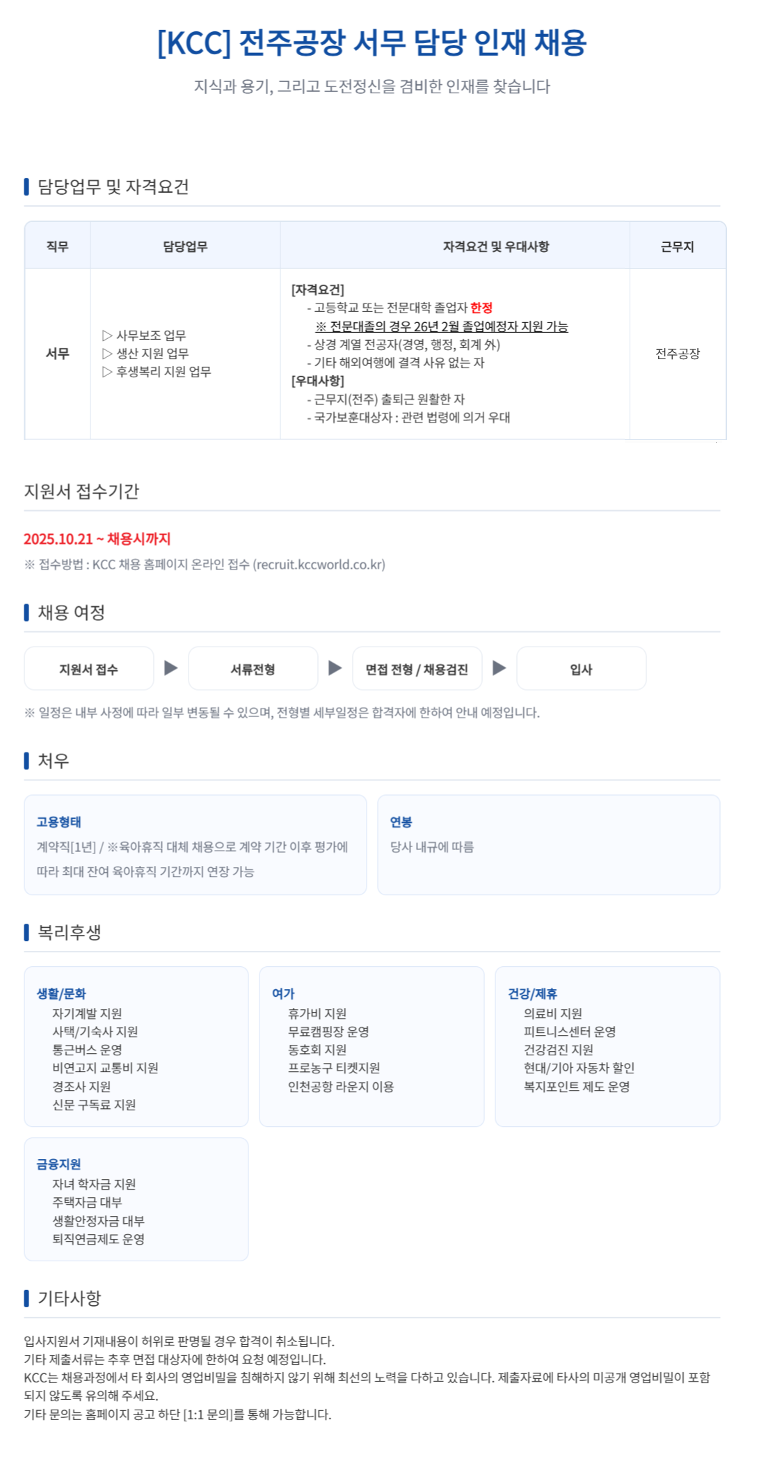 [KCC] ÀüÁÖ°øÀå ¼¹« ´ã´ç ÀÎÀç ä¿ë