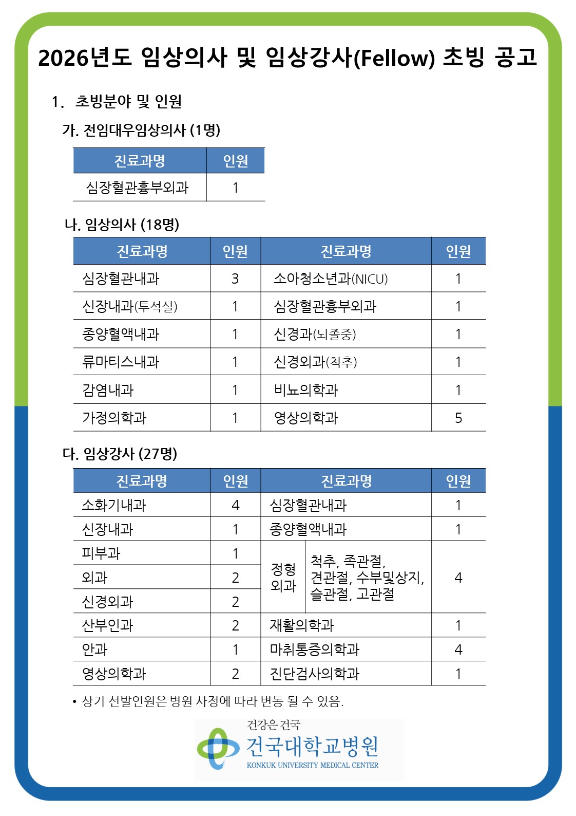 2026³âµµ °Ç±¹´ëÇб³º´¿ø ÀÓ»óÀÇ»ç ¹× ÀÓ»ó°»ç(Fellow) Ãʺù °ø°í