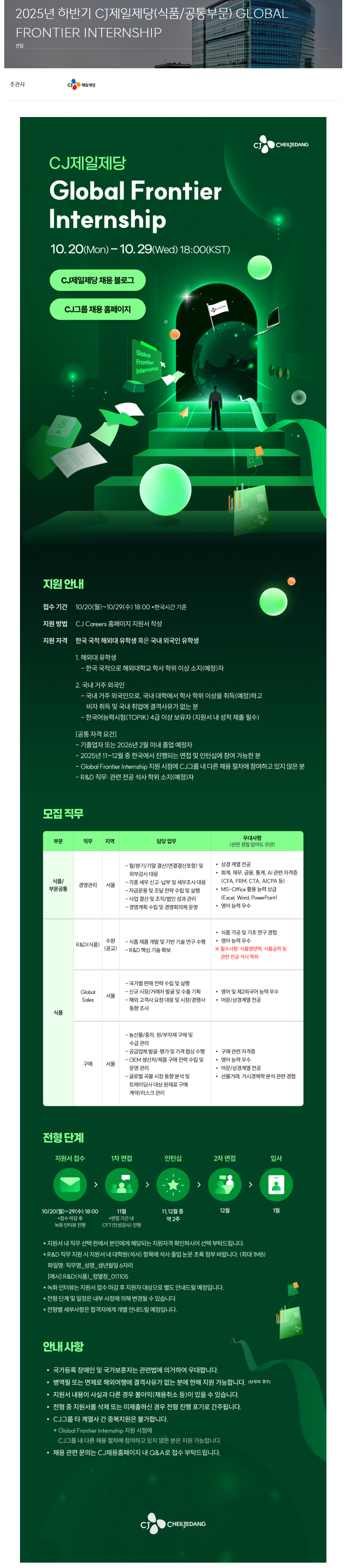 2025³â ÇϹݱâ CJÁ¦ÀÏÁ¦´ç(½Äǰ/°øÅëºÎ¹®) GLOBAL FRONTIER INTERNSHIP