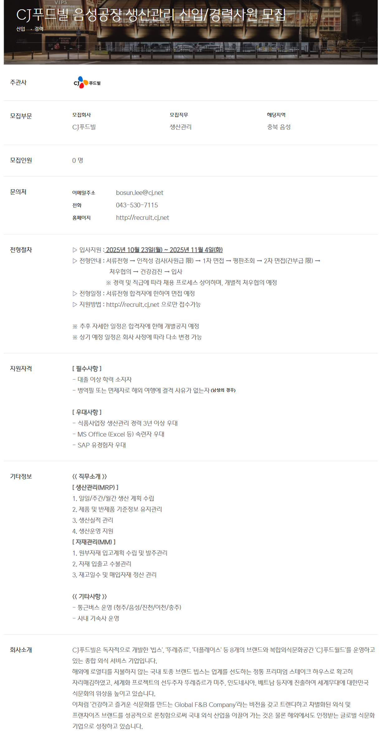 ¢¹ Áö¿ø¹æ¹ý : http://recruit.cj.net À¸·Î¸¸ Á¢¼ö°¡´É